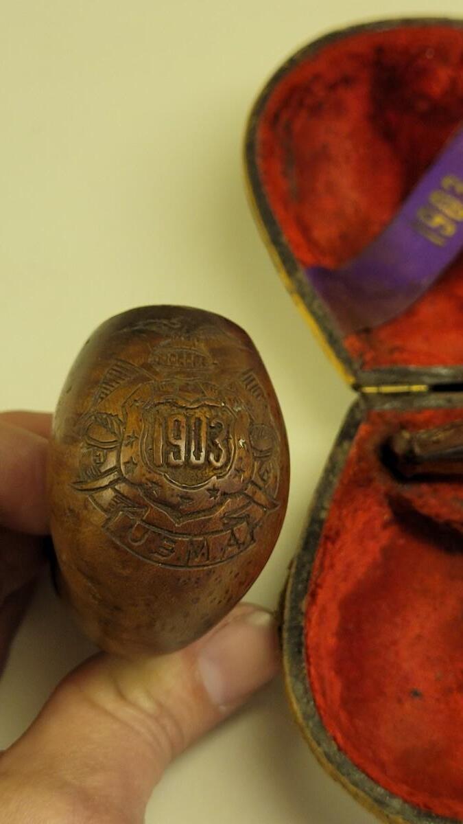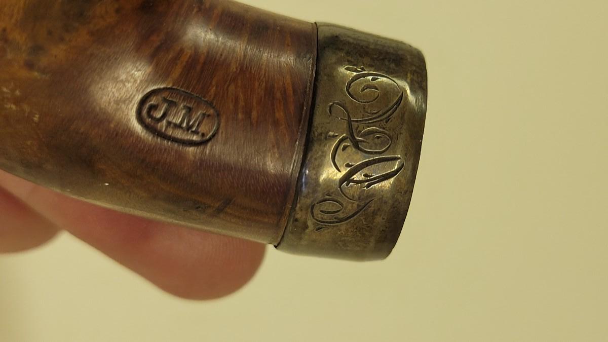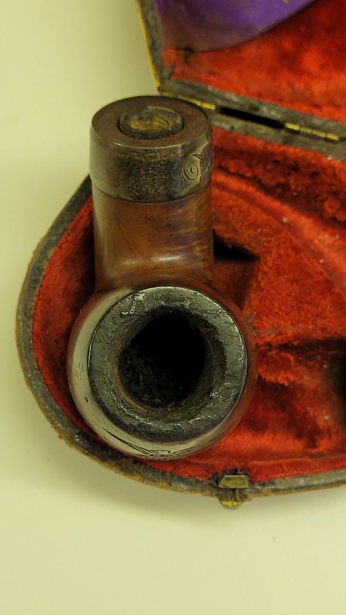 Lot 21: Antique 1903 Carved US Military Academy Sterling & Wood Pipe marked JM in Original Case