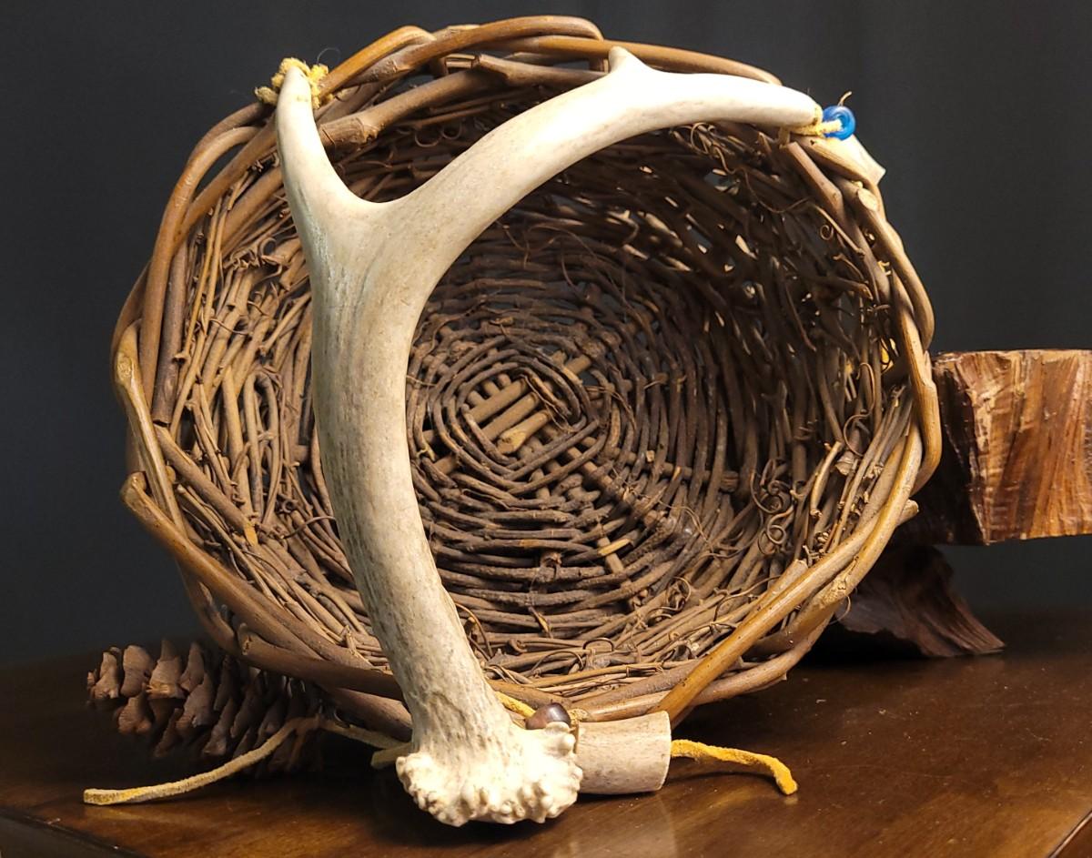 Lot 21: Vintage Native American Basket w/ Antler Handle