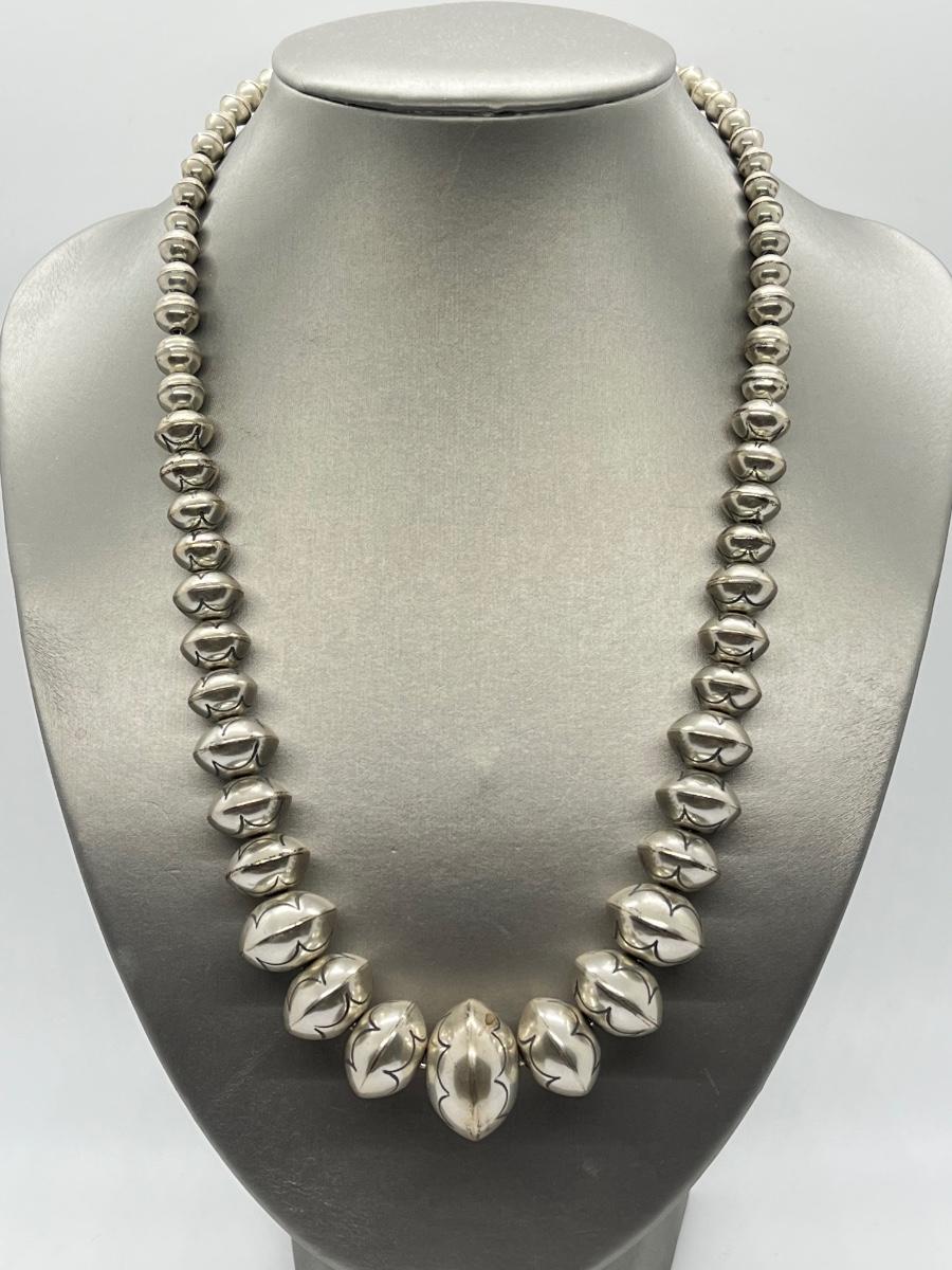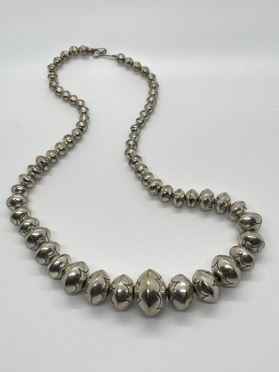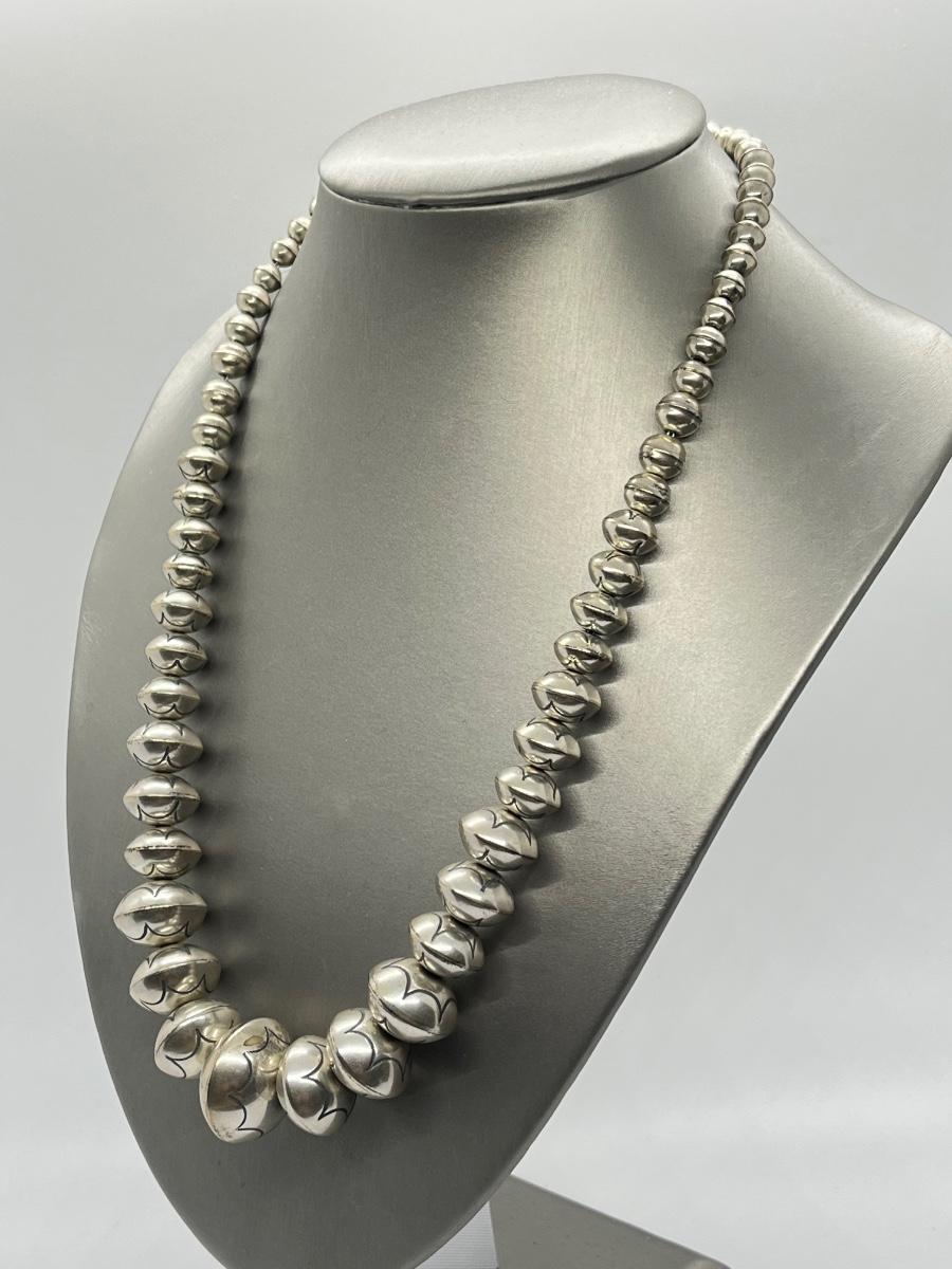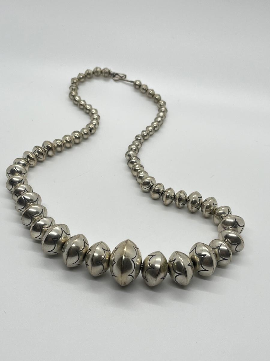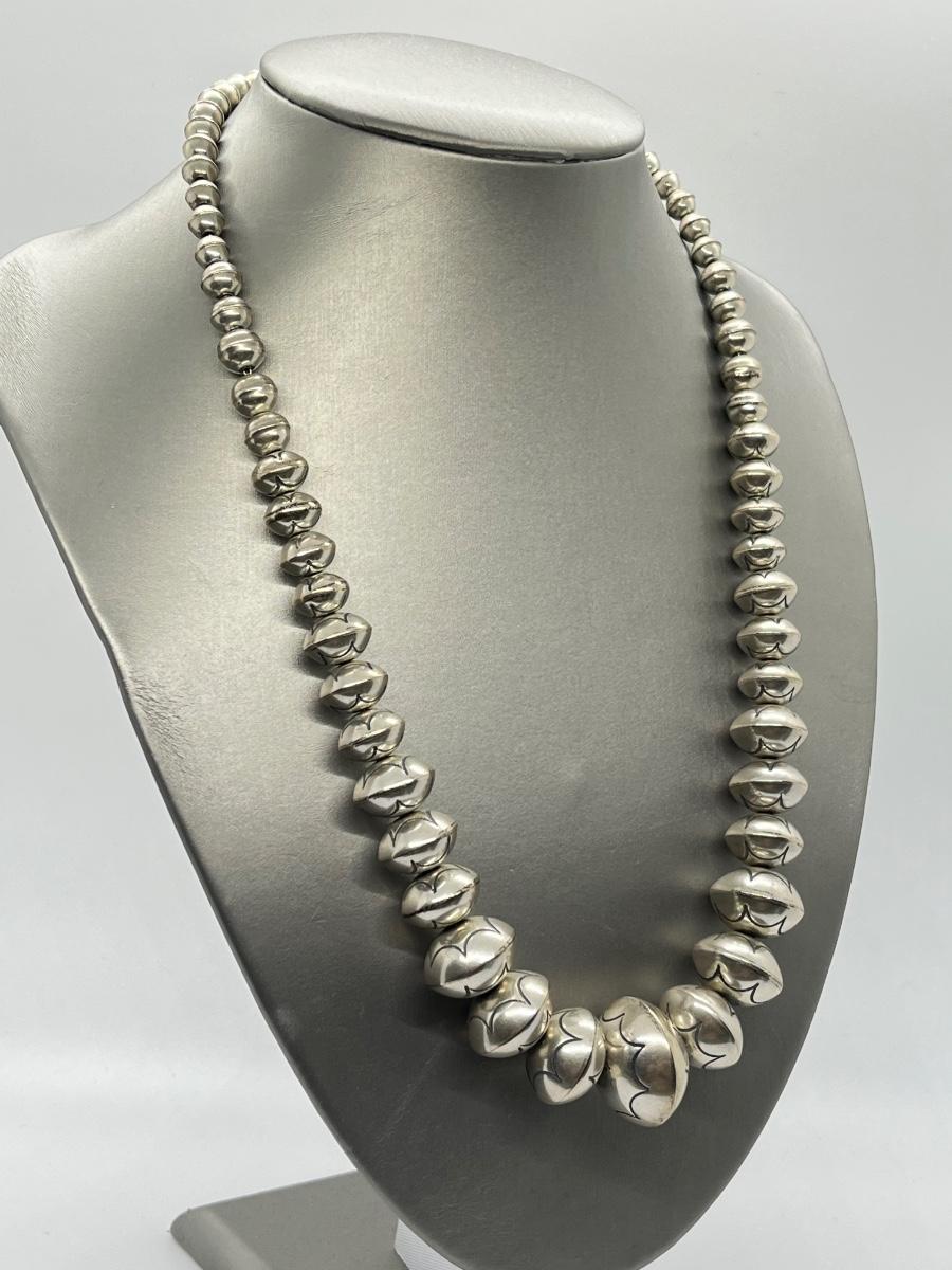 LOT 21: 22-inch Strand of Sterling Silver Graduated "Navajo Pearls" - 75 grams total weight