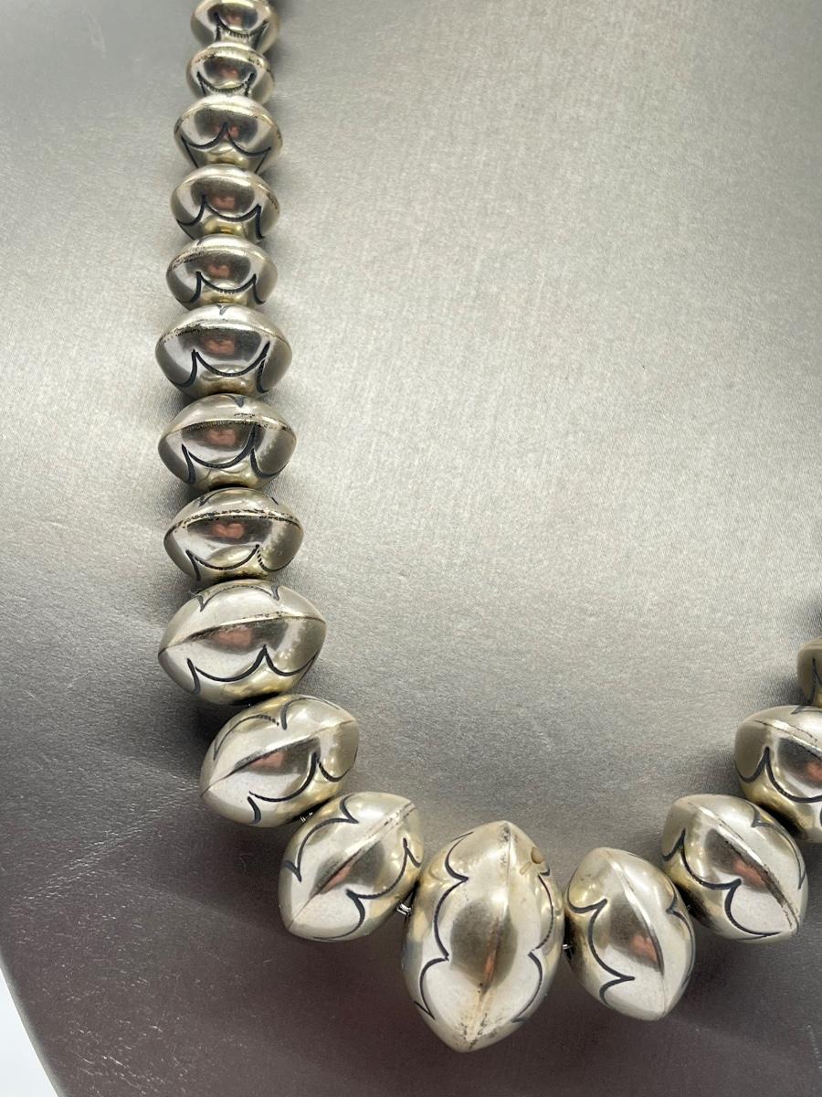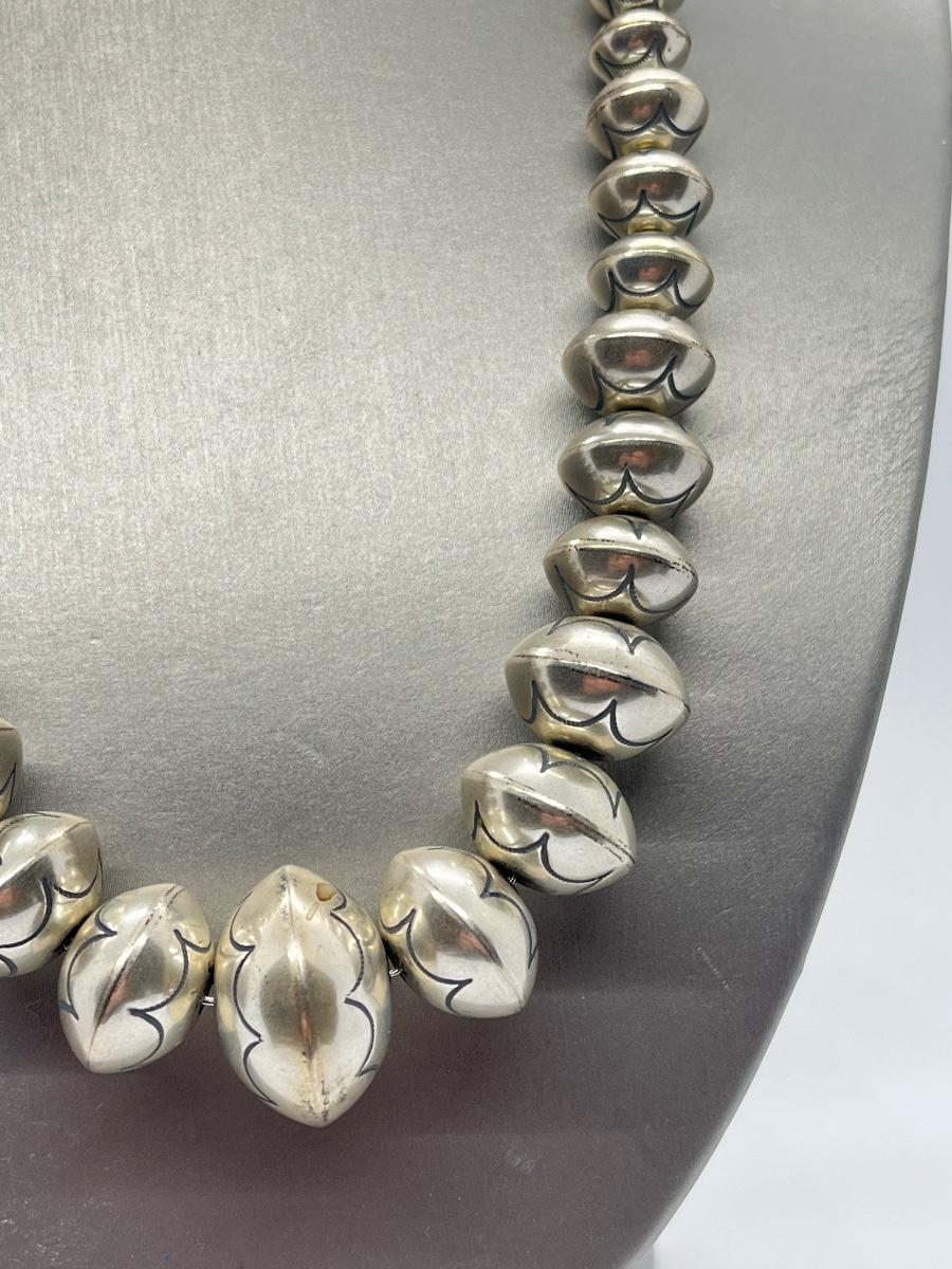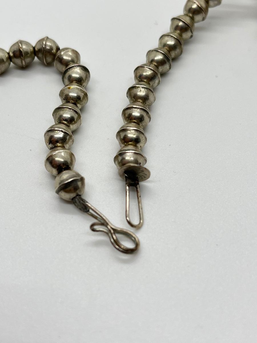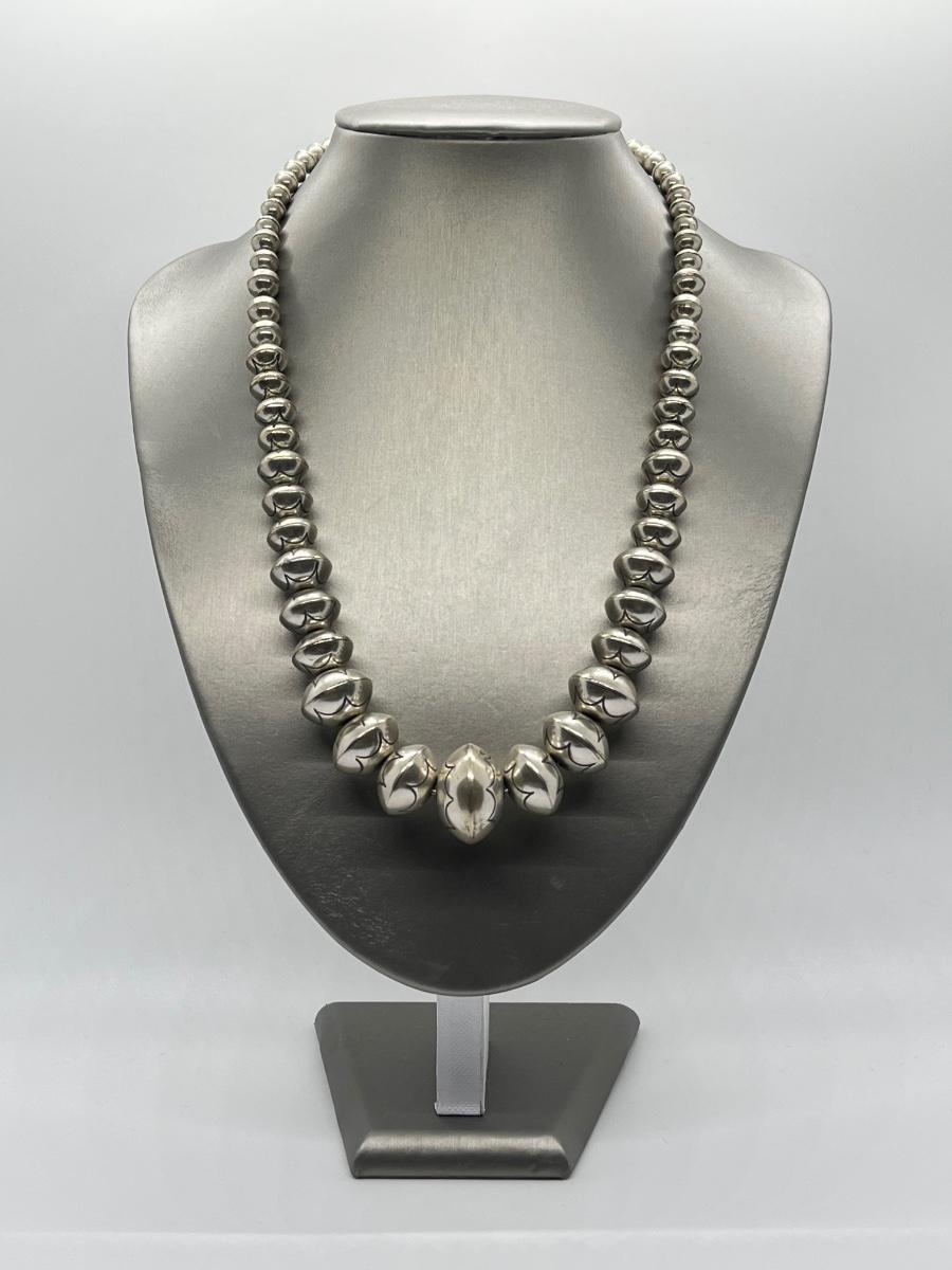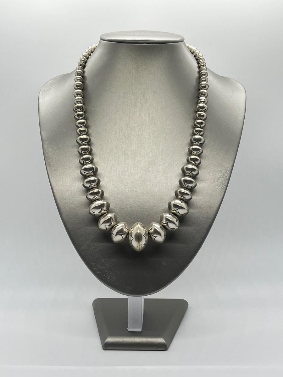 LOT 21: 22-inch Strand of Sterling Silver Graduated "Navajo Pearls" - 75 grams total weight
