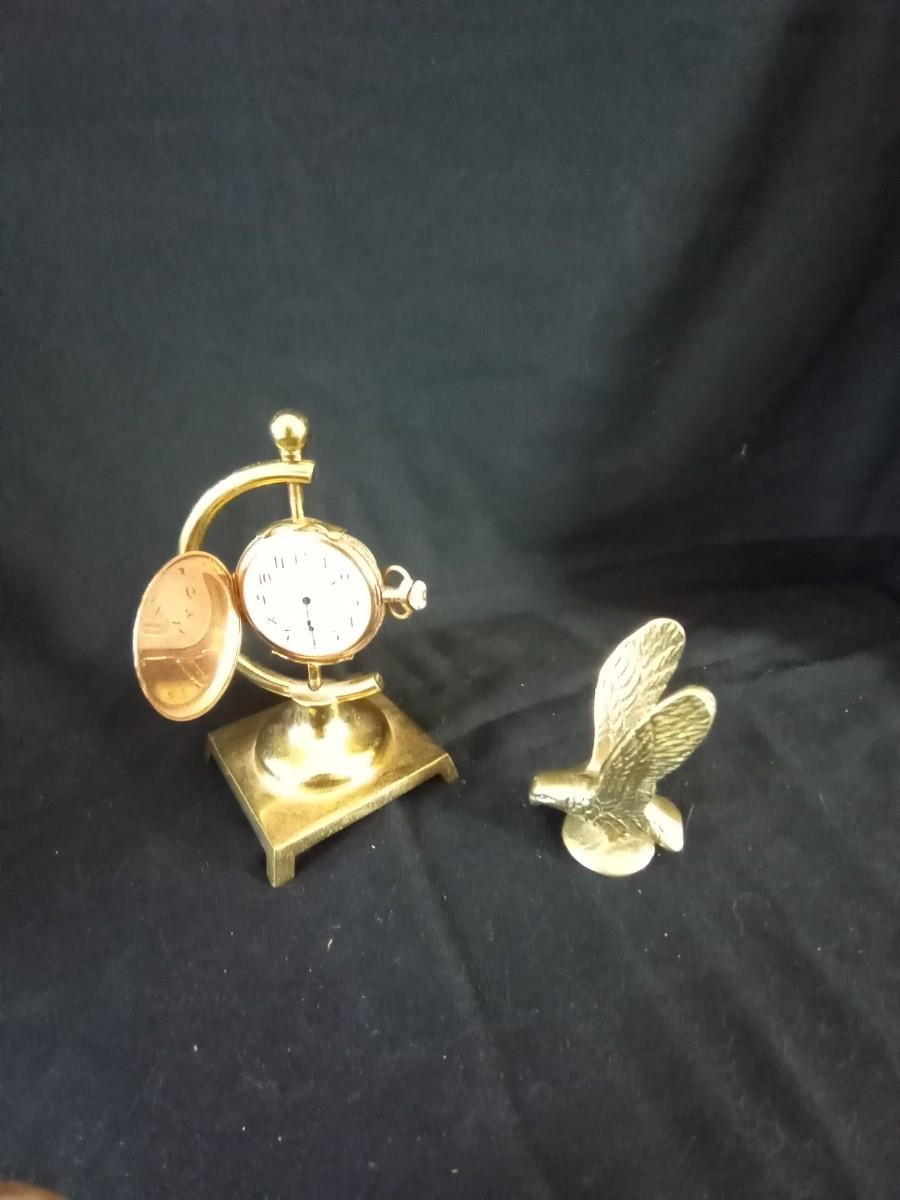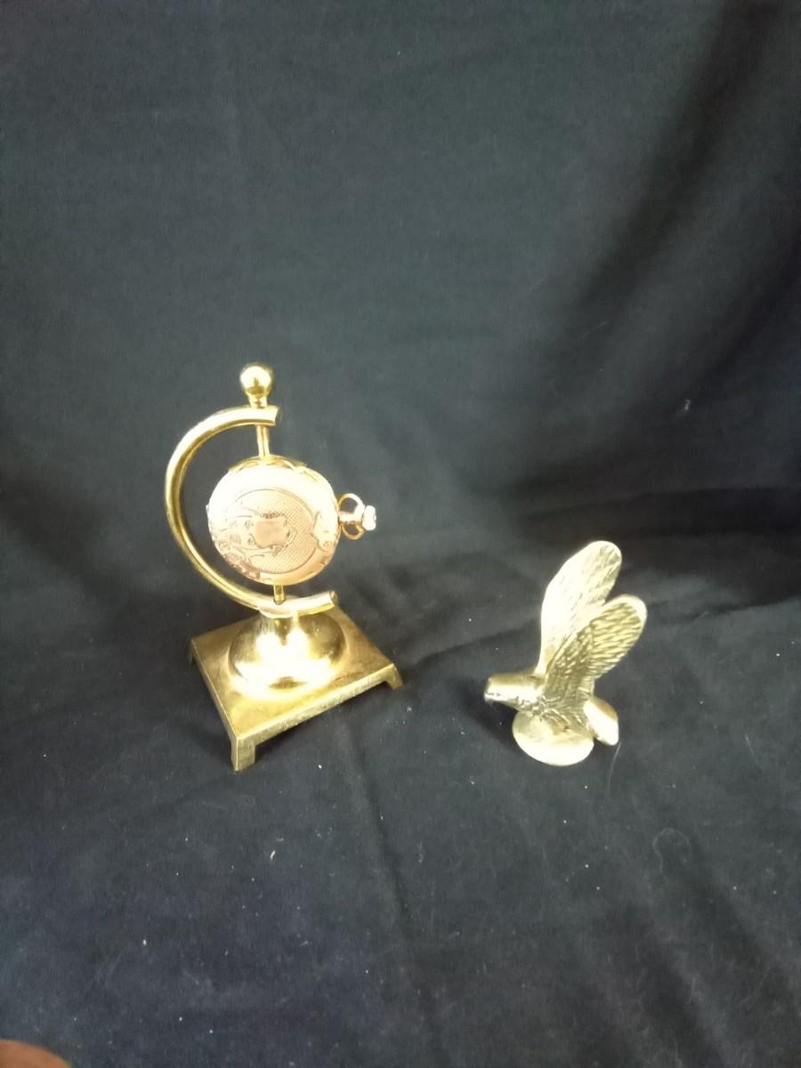 BRASS BOX MARKED COLORADO-SMALL BRASS EAGLE FIGURINE-TRAY AND WATCH ON STAND