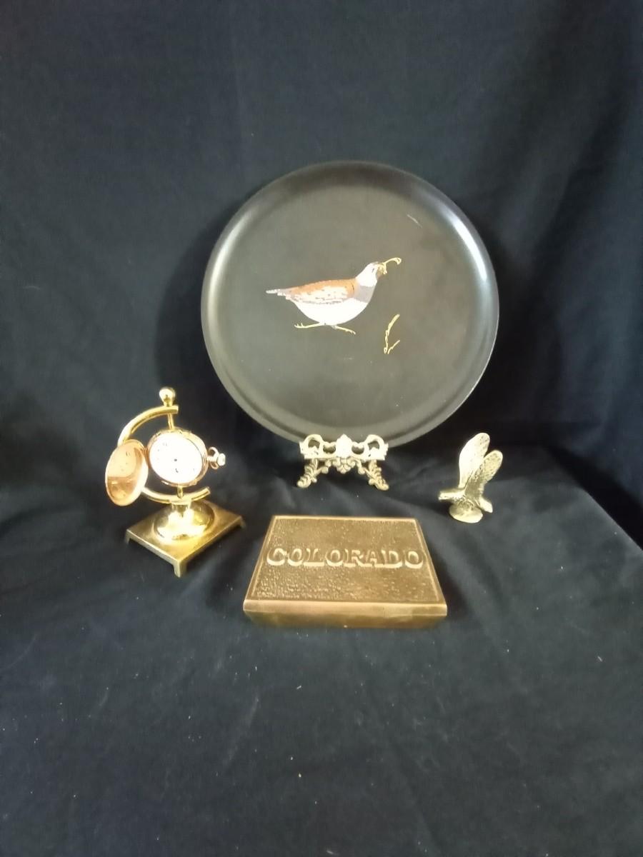 COLORADO BRASS BOX 3x5 - COLLECTIBLE TRAY 10,5 ROUND - TABLE CLOCK - SMALL BRASS EAGLE
