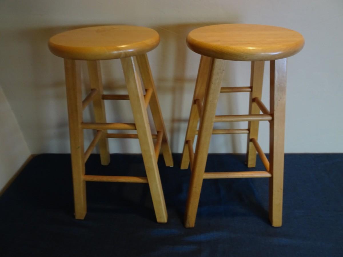LOT 21. PAIR OF WOOD STOOLS. 25" TALL