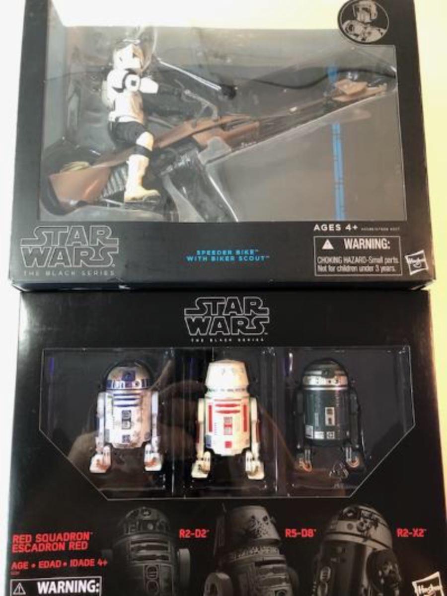 Lot 21-2 boxed sets of 6” action figures. includes Speed Bike with Scout, Droid 3 pack (R2-D2, R5-D8, R2-X2.