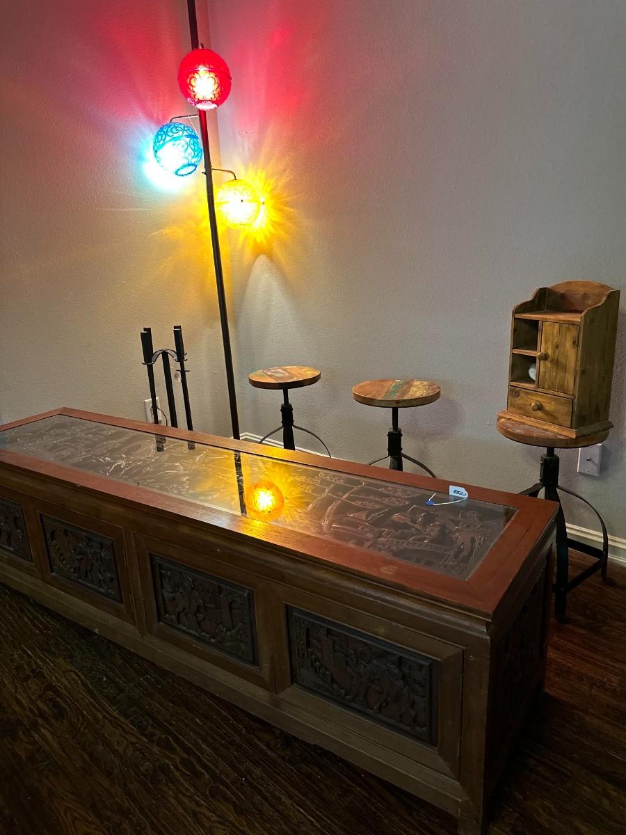 Lot 21: Colorful Lamp, Long Asian Dresser & More