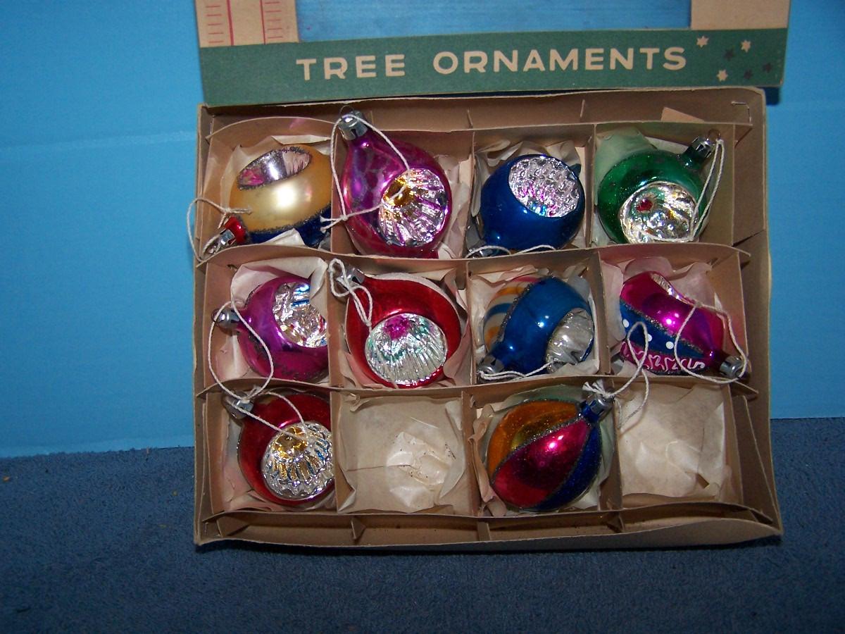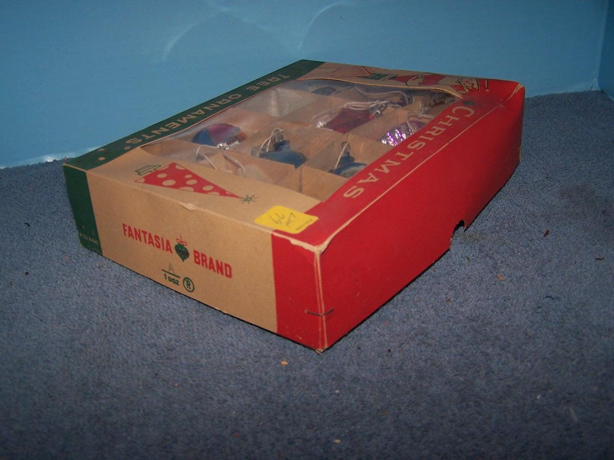 THESE ARE BEAUTIFUL VINTAGE GLASS CHRISTMAS ORNAMENTS!!! MADE IN POLAND! EACH ORNAMENT AND BOX ARE MARKED.. 2 MISSING.. LIGHT WEAR