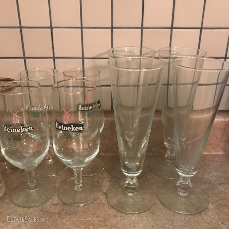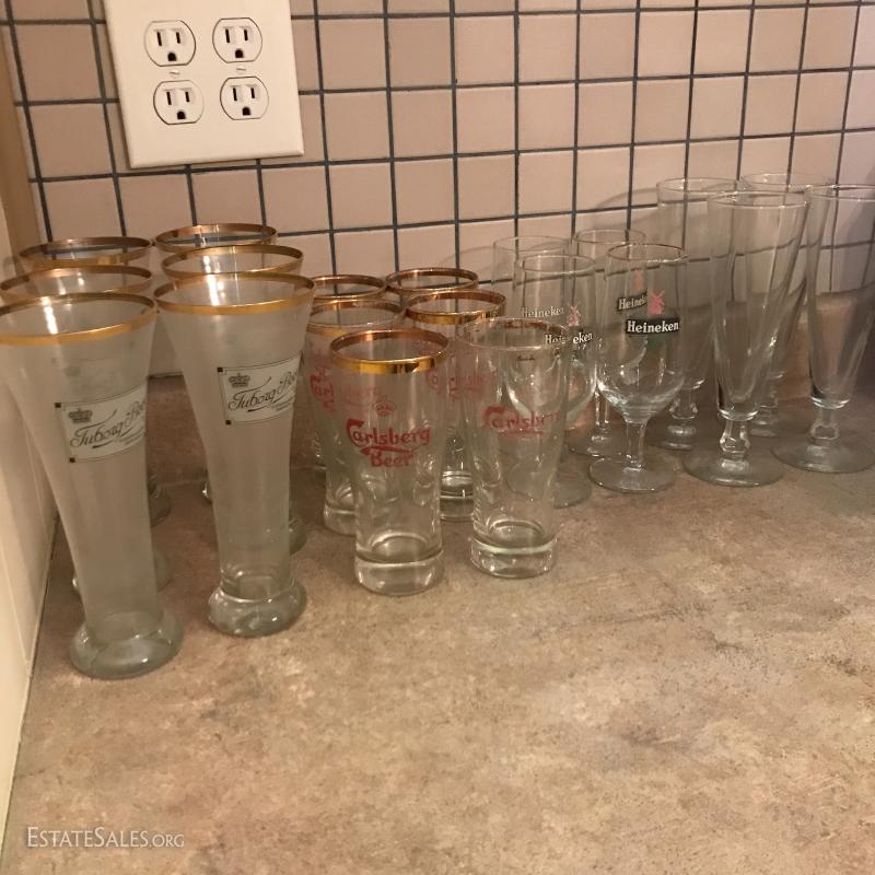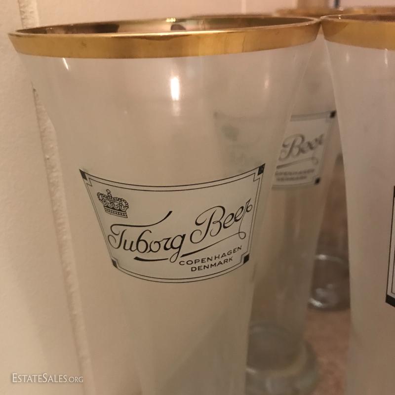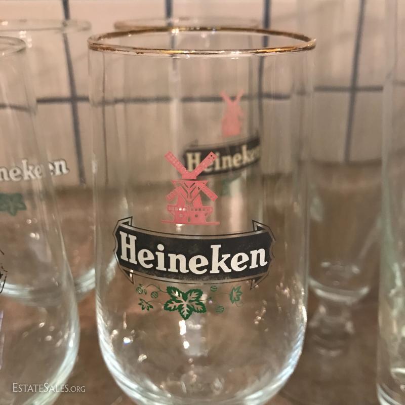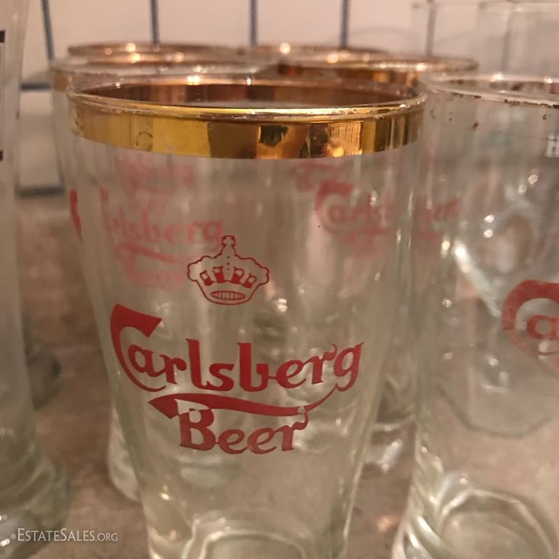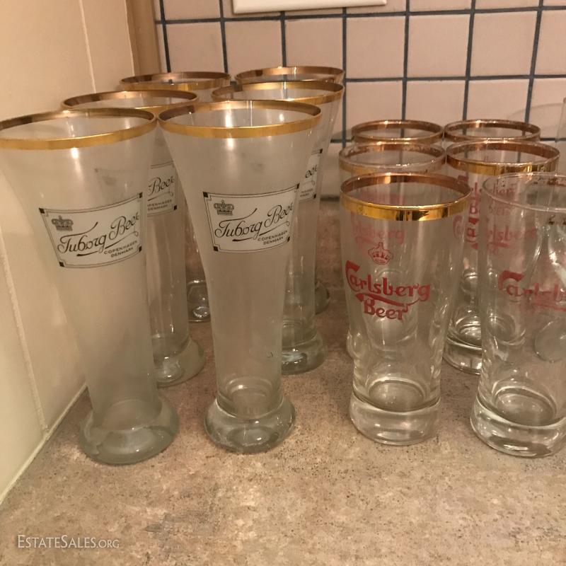 Set of 6 Tuborg beer glasses from Denmark. Set of 6 Carlsberg glasses. Set of 4 Heineken glasses. Set of 4 tall pint glasses. Logos faded on some. Shipping or local pick up in Asheville, NC.