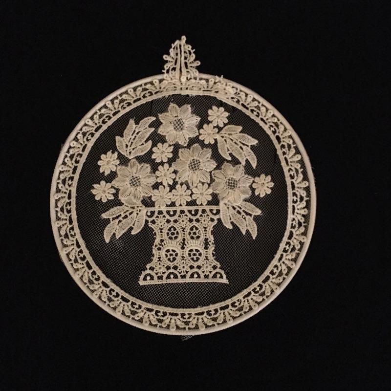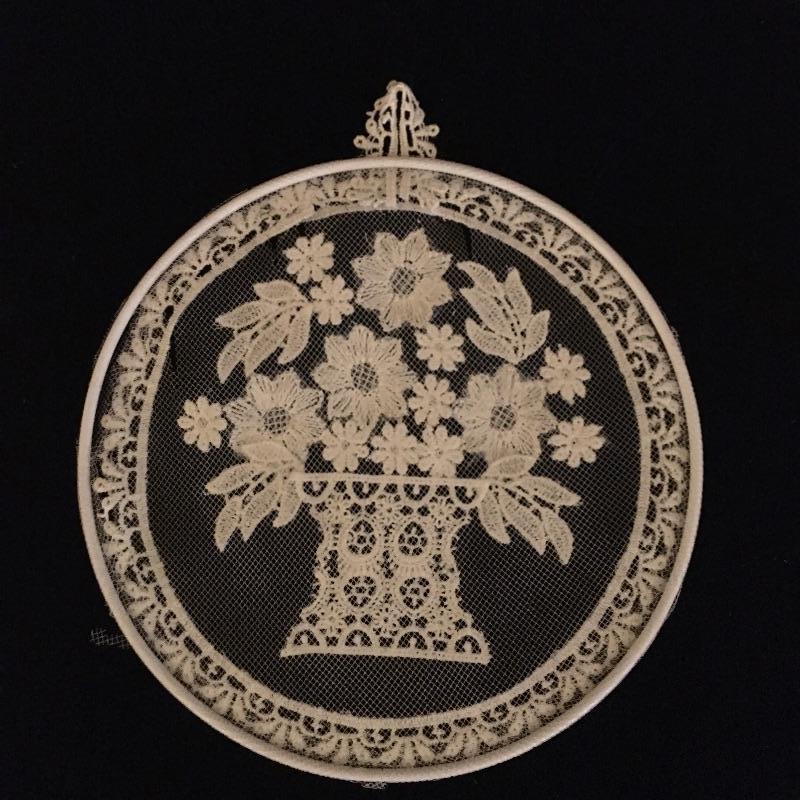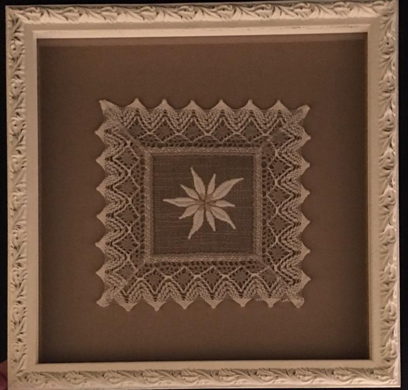 Framed lace and more includes a beautifully framed piece and two additional pieces. The smallest piece has a few small tears, see pictures. Frame measures 13.25” x 13.25”.