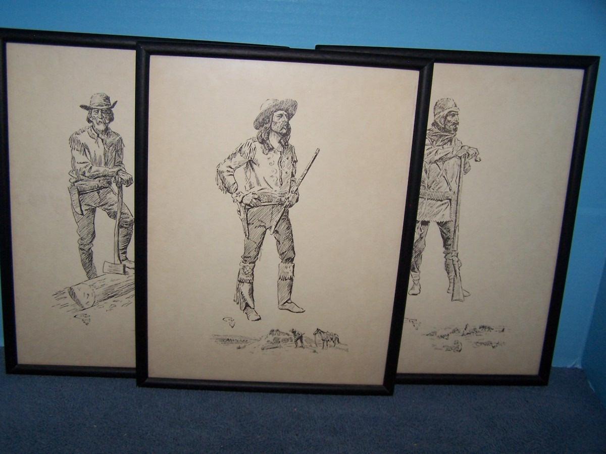 THESE ARE 3 GREAT VINTAGE CHARLES RUSSELL PRINTS!!! FRAMES ARE 8 1/2'' X 11''.. LIGHT WEAR..