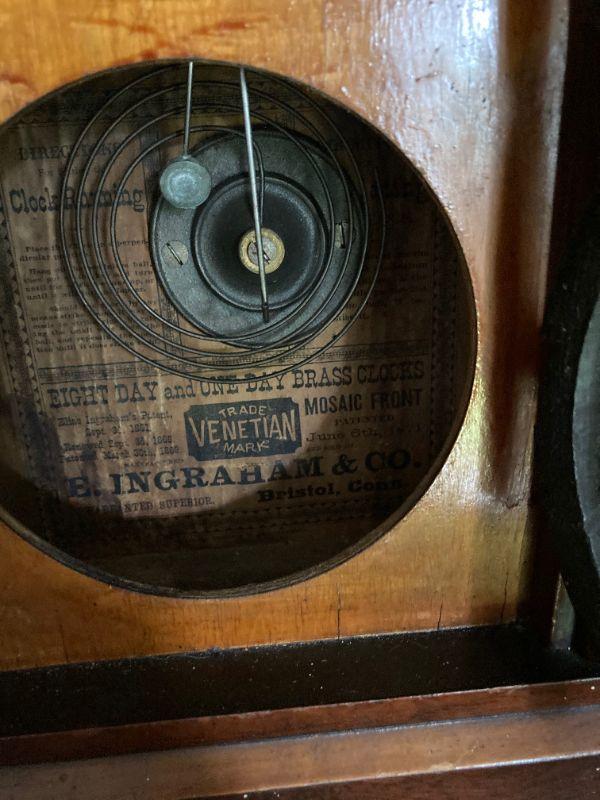 15.5" tall. 8 day movement. Orig. dial, hands,glass. Label dark but clear print. Rebuilt 6-2020