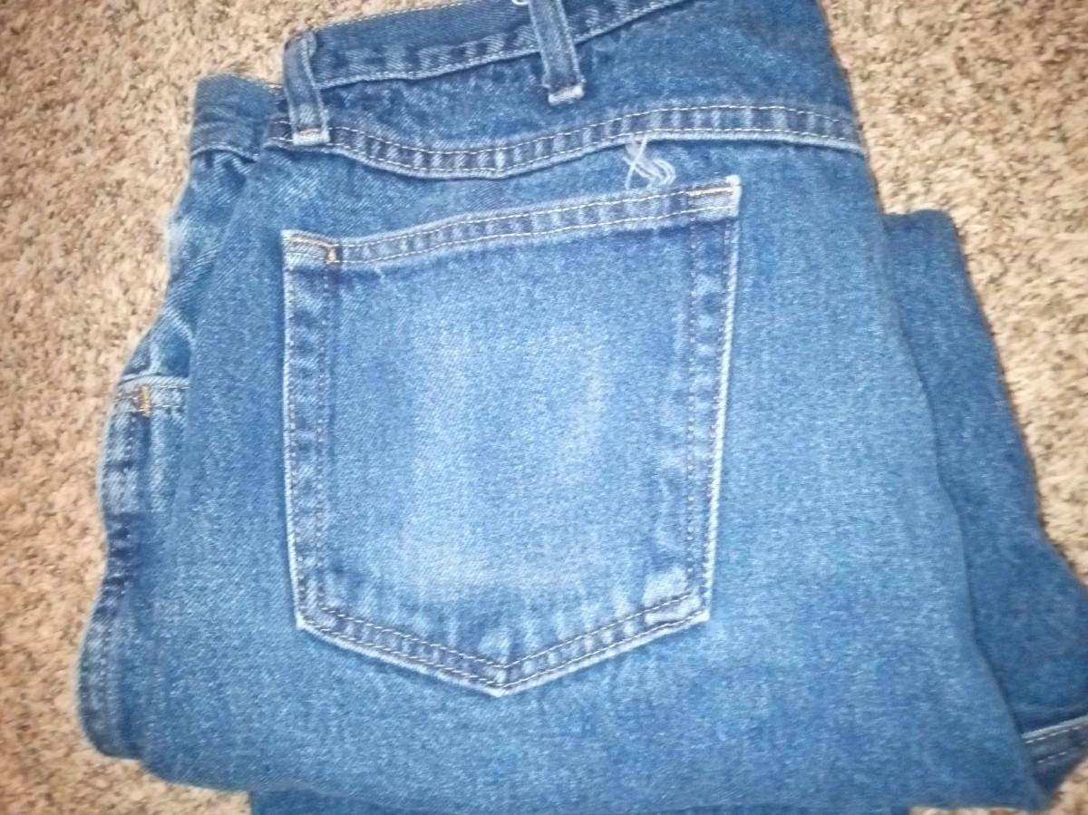 THEY HAVE A WALLET MARK ON THE BACK POCKET AND SOME WEAR TO THE FRONTS