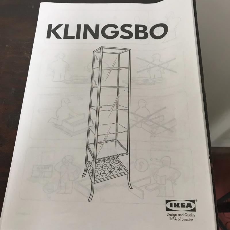 Metal and glass display cabinet with lock and 5 internal shelves. From Ikea. Decorative lower metal shelf. Excellent Condition. Unit measures 21” x18” x71”. Lot is available for local pick up in Asheville, NC only.