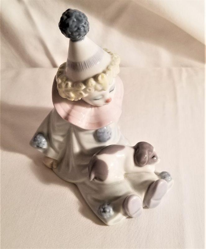 Nice single Lladro figurine (no box) - young clown with puppy in his lap. Measures 4.25" tall, 3,5" long. Nice condition.