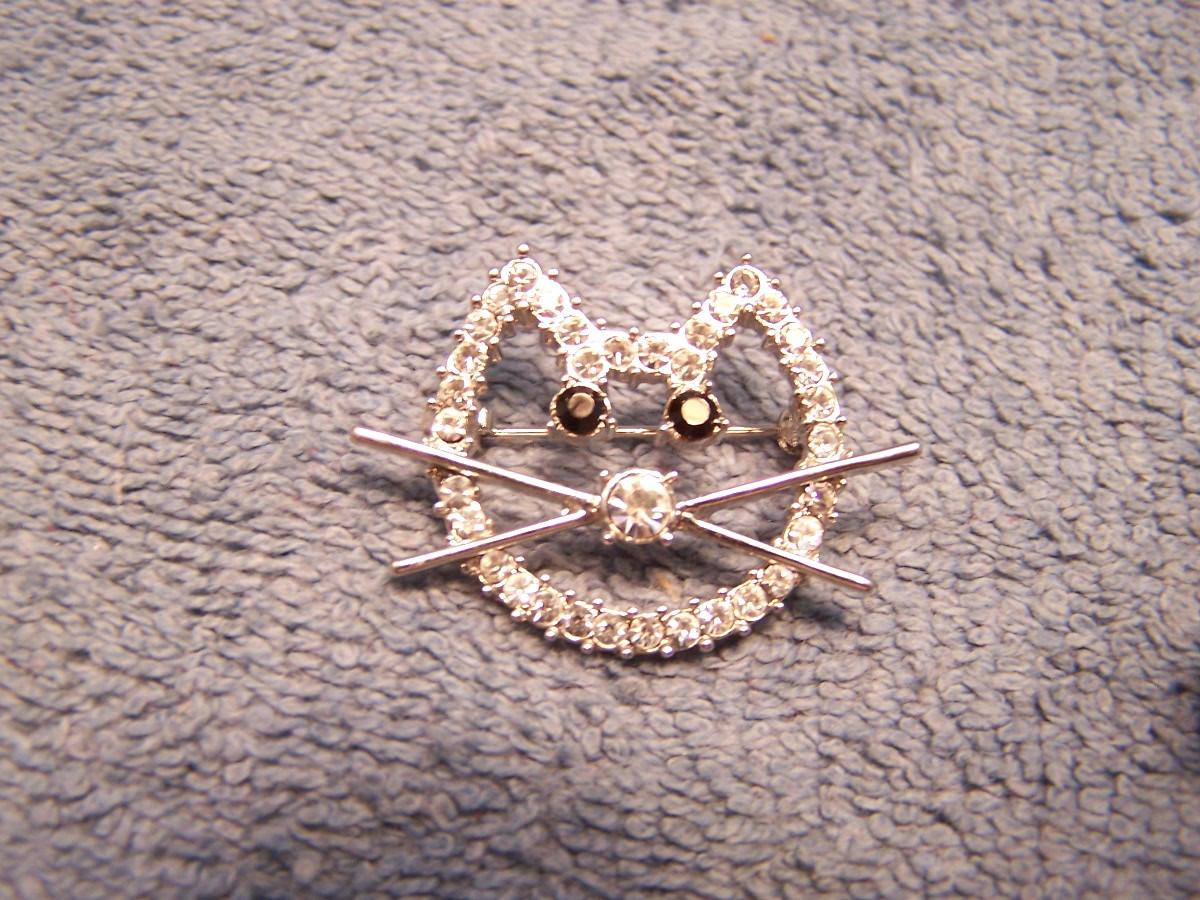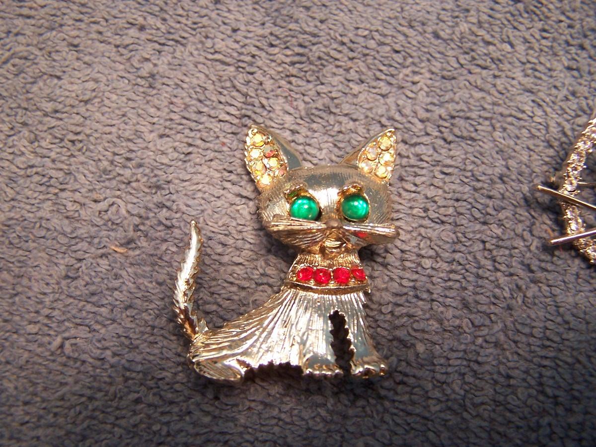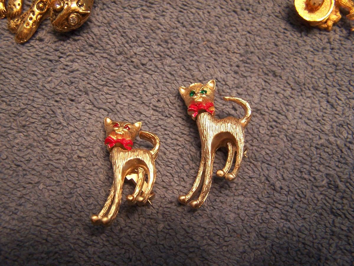 GREAT COLLECTABLE CAT PINS!!!! UNMARKED... THE CAT FACE PIN IS 1'' X 1 3/8''... SLIGHT WEAR...