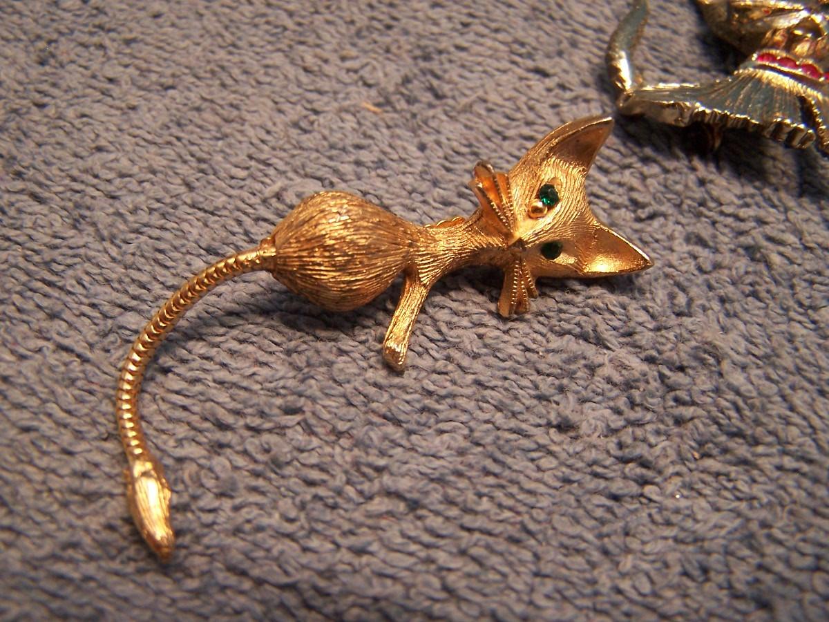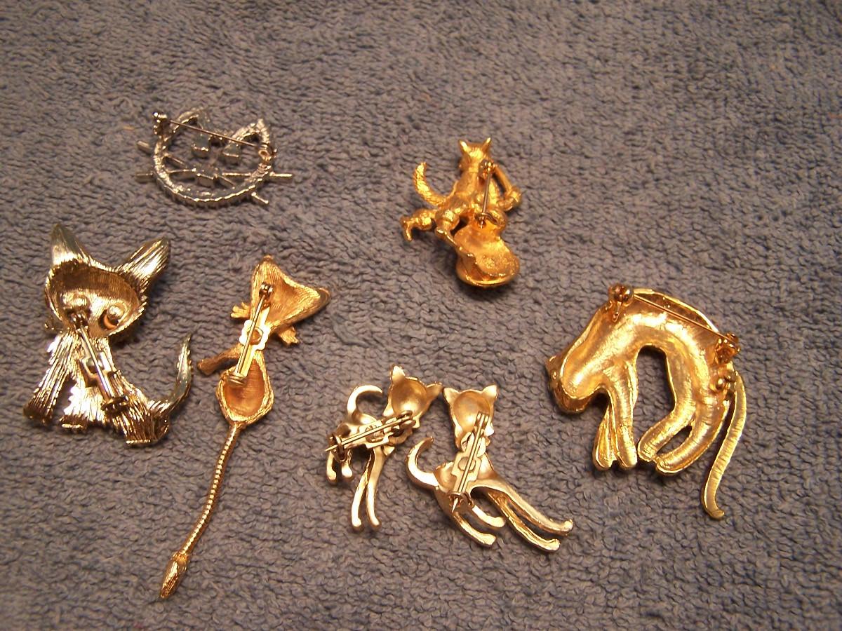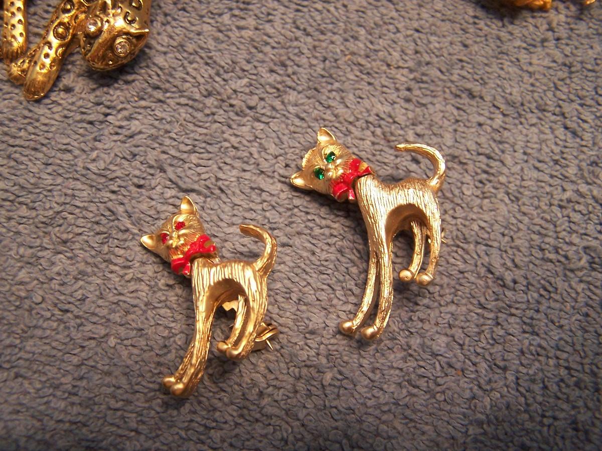 GREAT COLLECTABLE CAT PINS!!!! UNMARKED... THE CAT FACE PIN IS 1'' X 1 3/8''... SLIGHT WEAR...