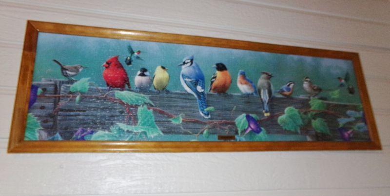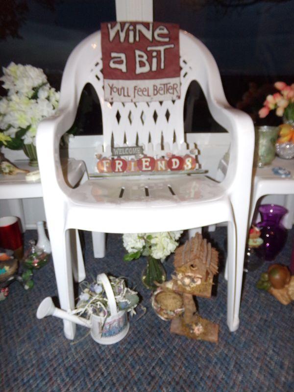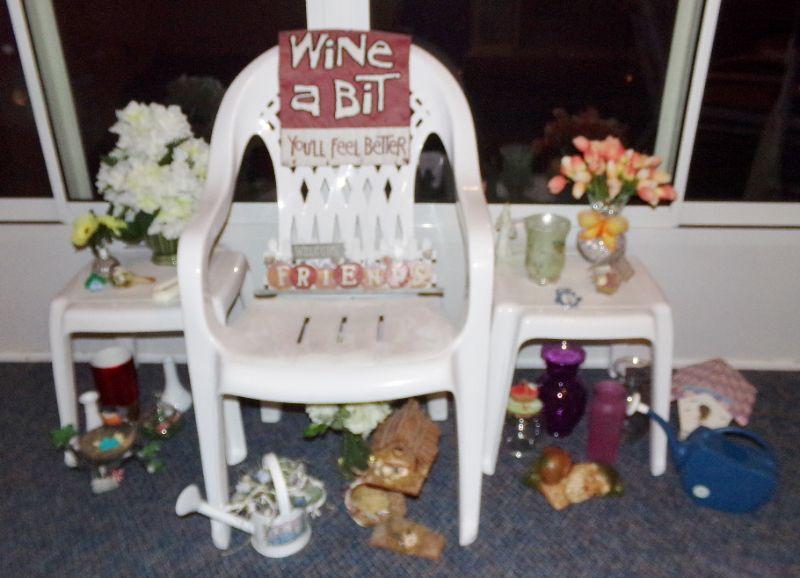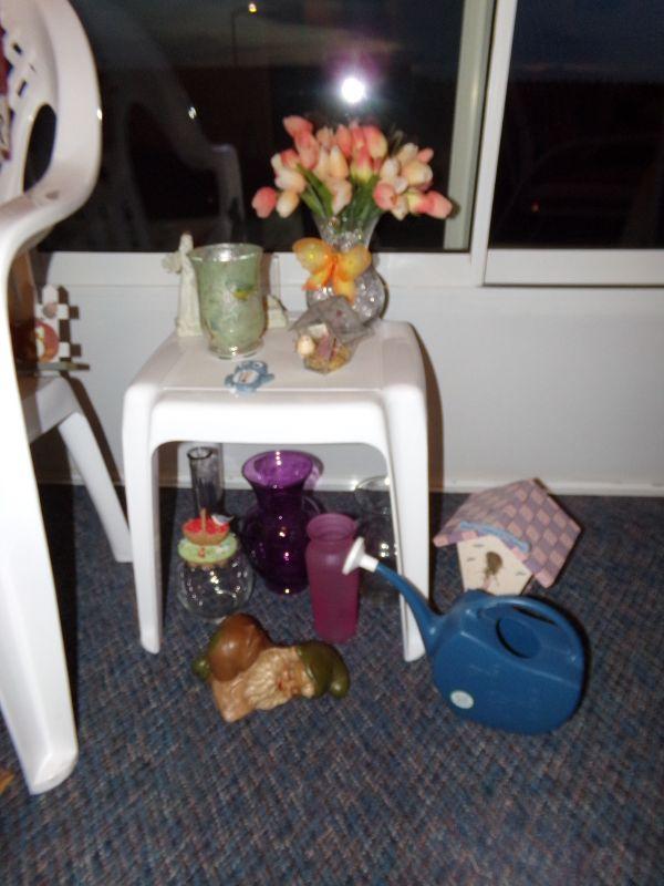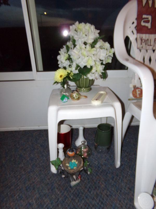 2 PLASTIC TABLES & 1 CHAIRS IN ADDITION TO EVERYTHING ELSE YOU SEE. THE BIRD PICTURE IS A JIGSAW PUZZLE