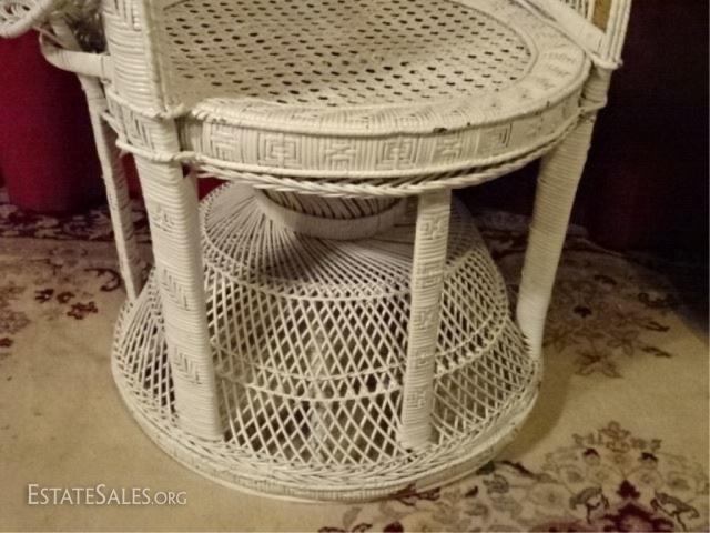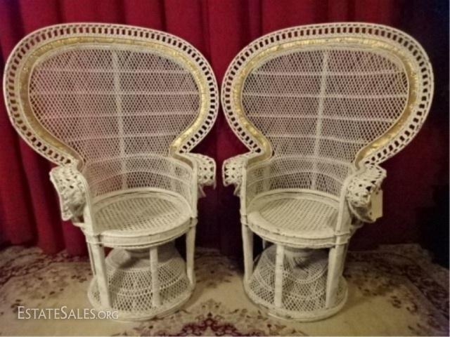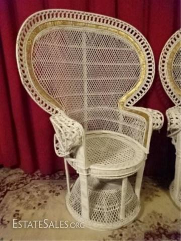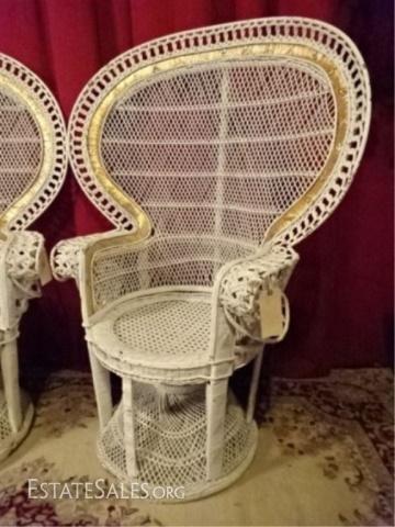LOT 21: PAIR GILT AND WHITE WICKER PEACOCK ARMCHAIRS