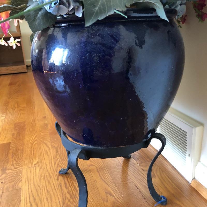 Lot 21 - Large Plum Colored Planter With Faux Floral