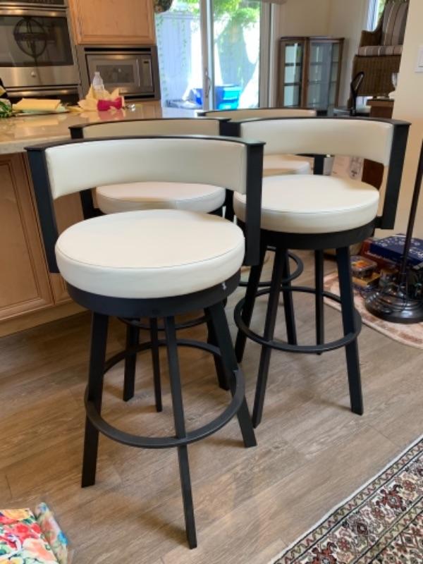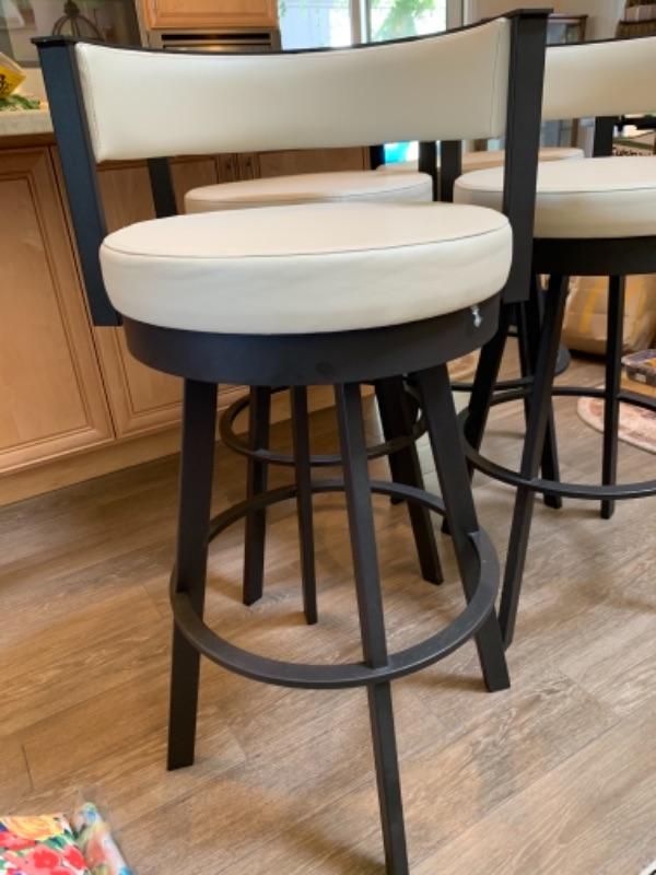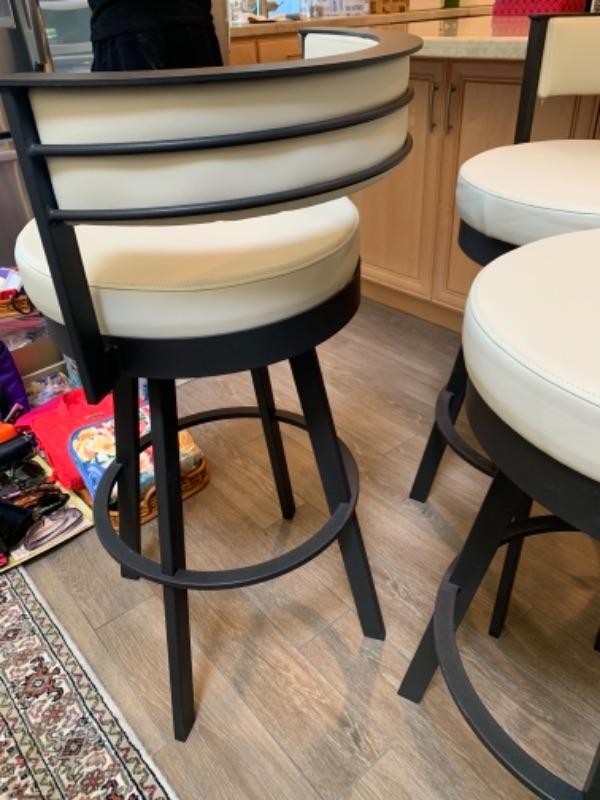 Lot 21. Set of 4 leather swivel barstools“”Amisco Ronny“”sturdy and in excellent condition (30” to seat; 38” to back)--$450