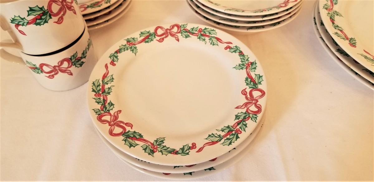 Lot #21 Set of Christmas Ribbons Dinnerware