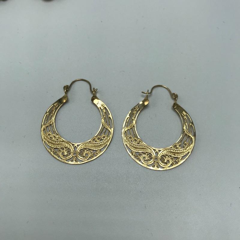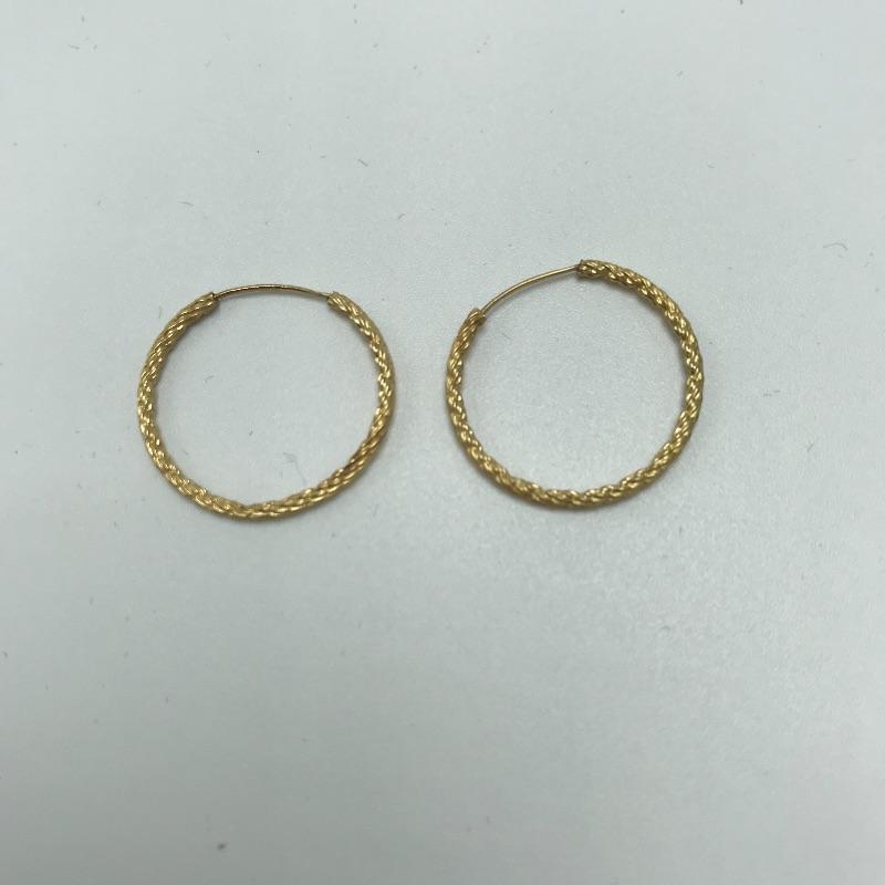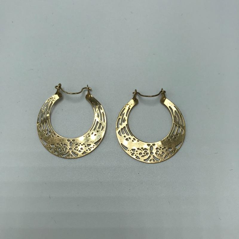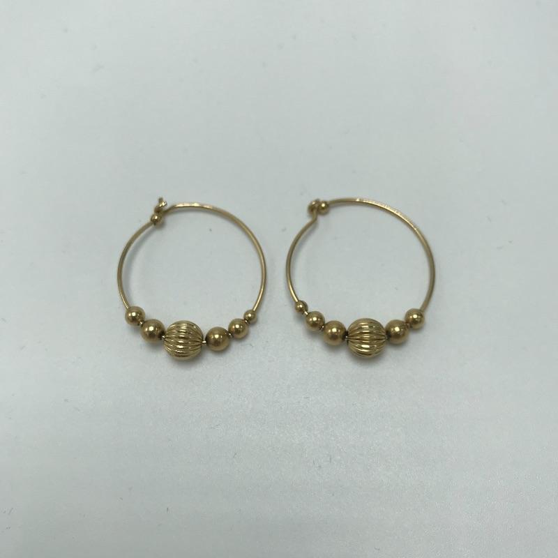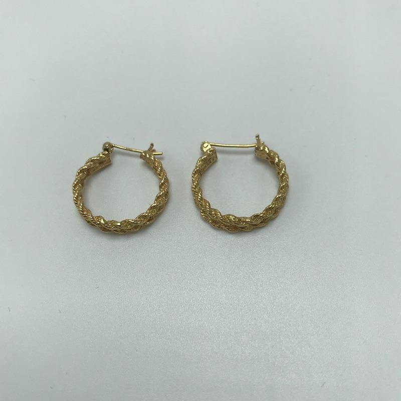 Wear a different pair every day of the week! Seven fashionable hoop earrings all golden for your fashion needs. One chunk pair appears to be marked 10K, the earrings are lighter than they look, possibly hollow.