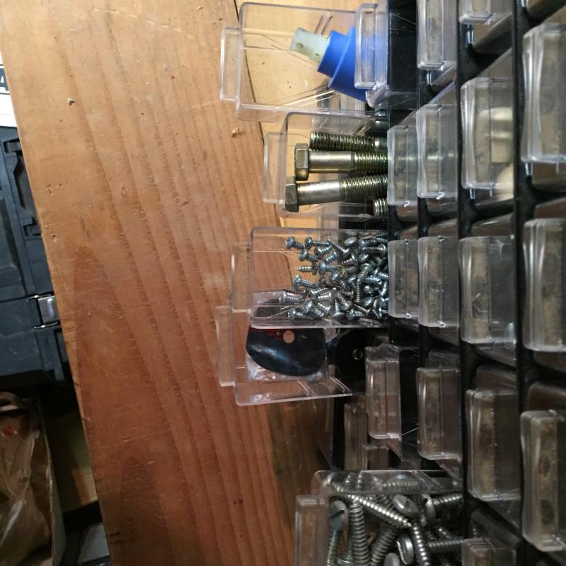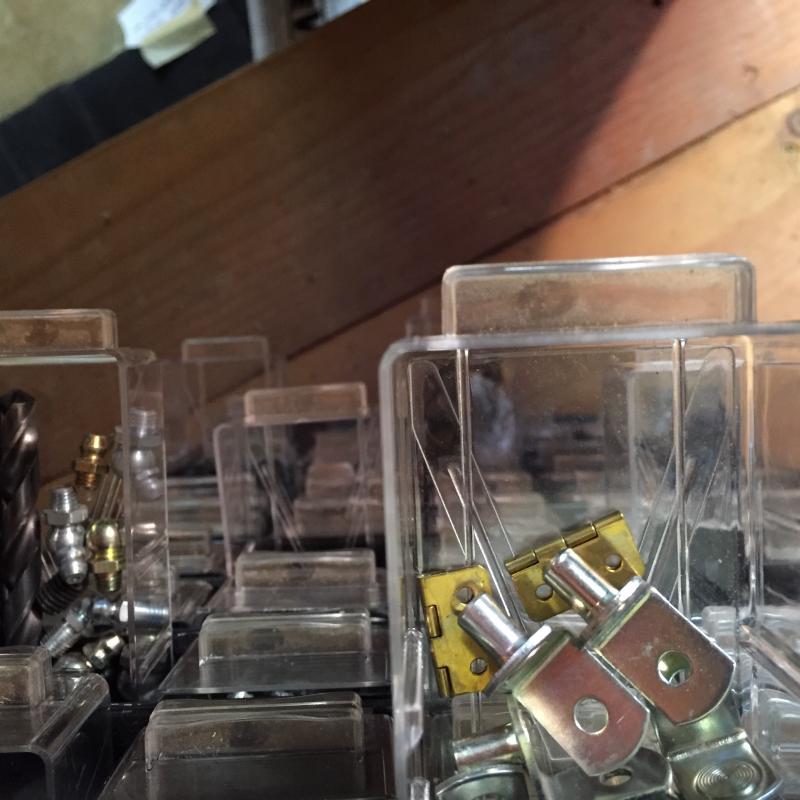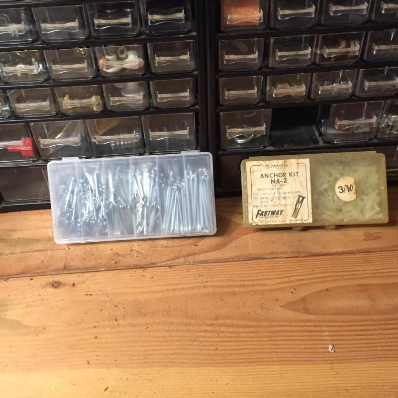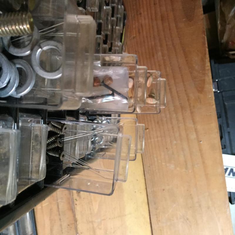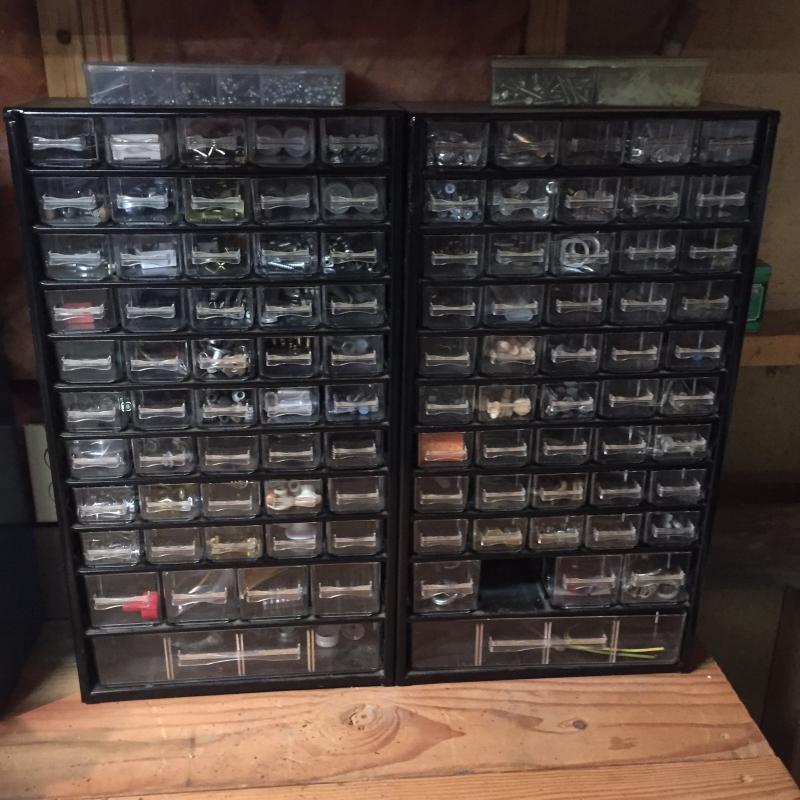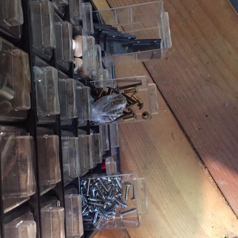 Two Hardware Storage Boxes. Filled with all types of screws, nuts, bolts and more. Each unit measures 12” x6” x22”. Lot is available for local pick up in Horseshoe, NC only.