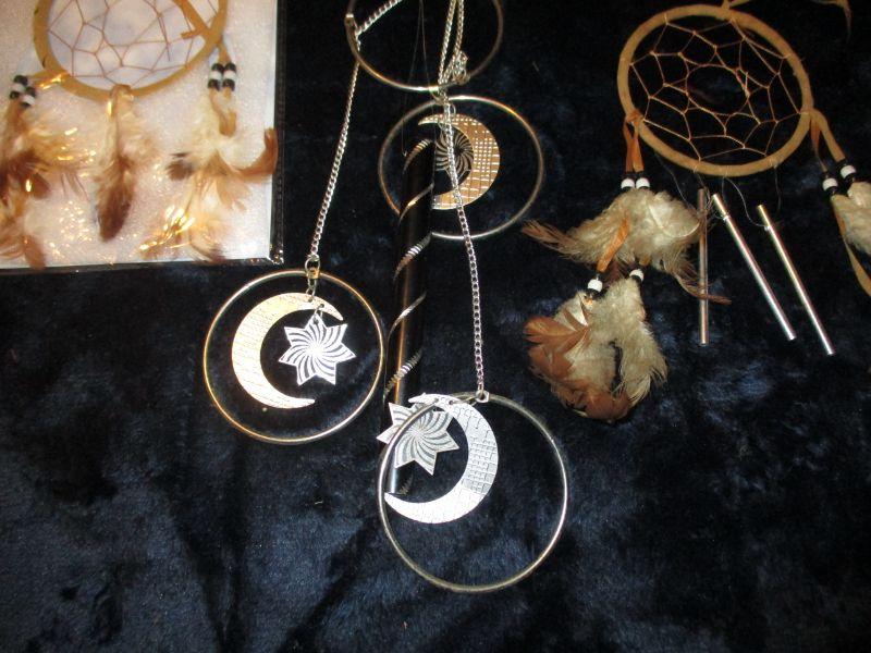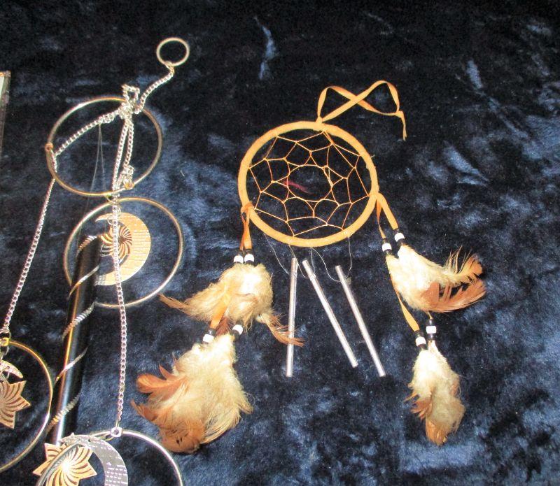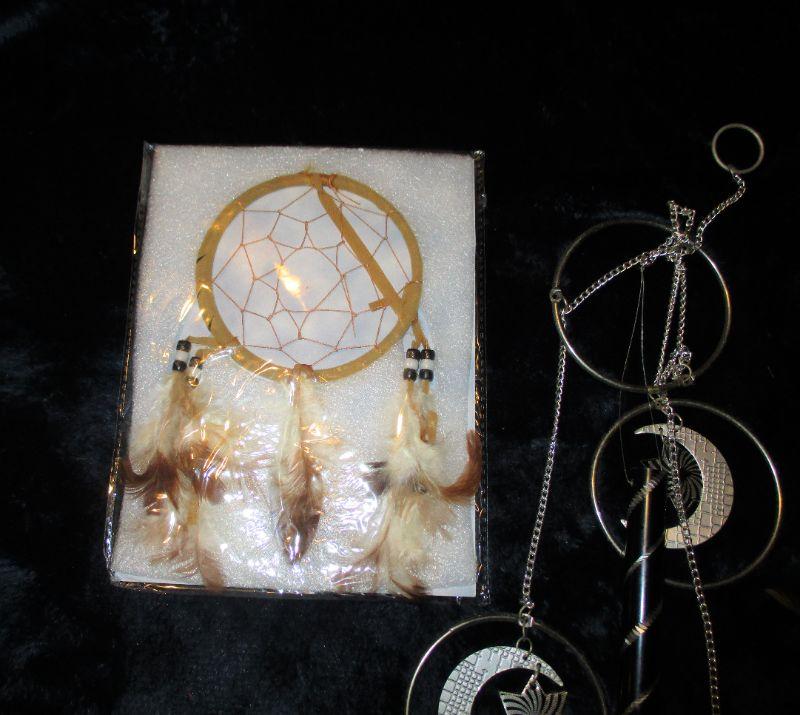 Two dream catchers to keep the bad dreams away and a moon and stars wind chime to lull you to sleep.