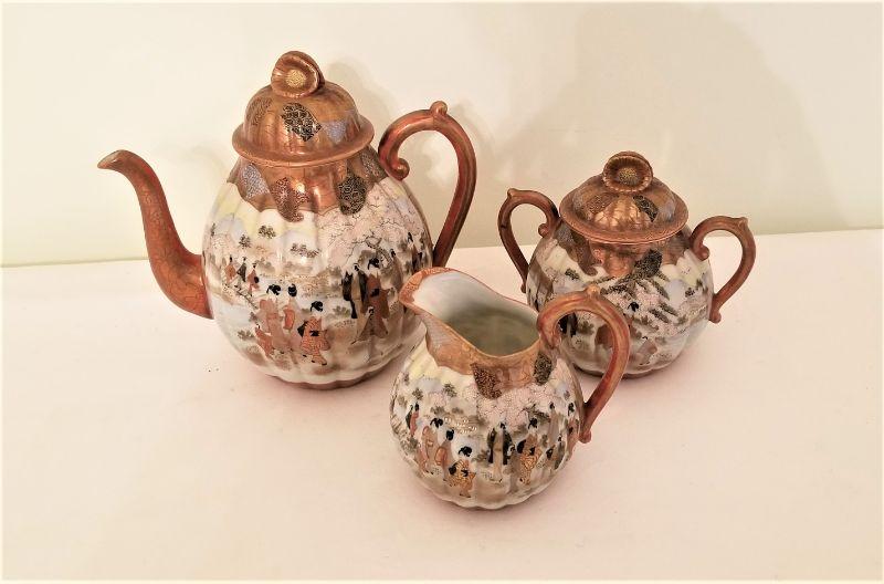 Lot #21  Three Piece Antique Tea Set - 19th century Asian styling