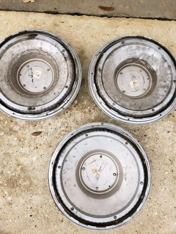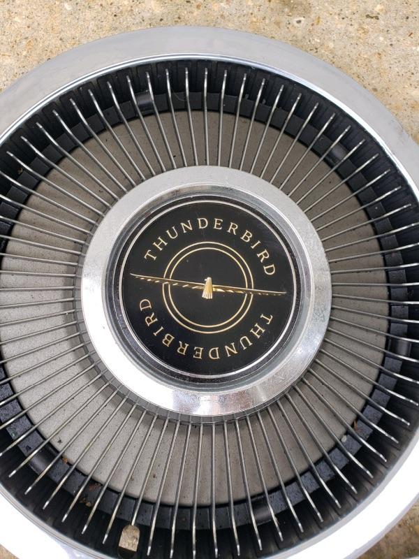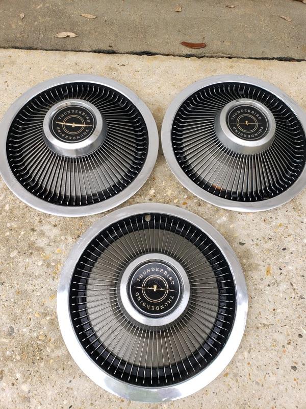 Three vintage Thunderbird hubcaps, + one similar, 60s