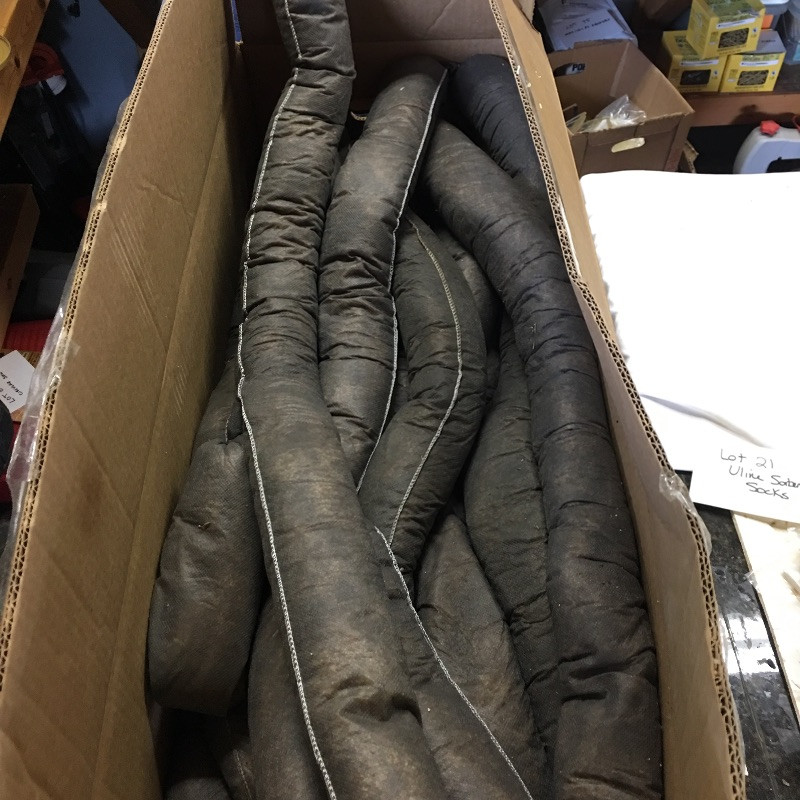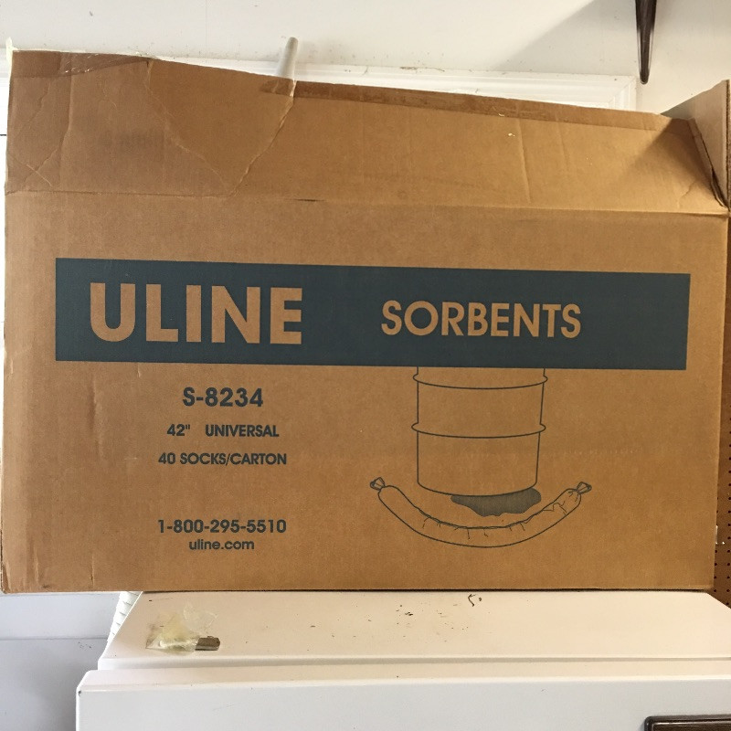 Uline 42” sorbent socks. Box holds 40 when new and it looks almost full. Be ready for spillage with these sorbent socks.