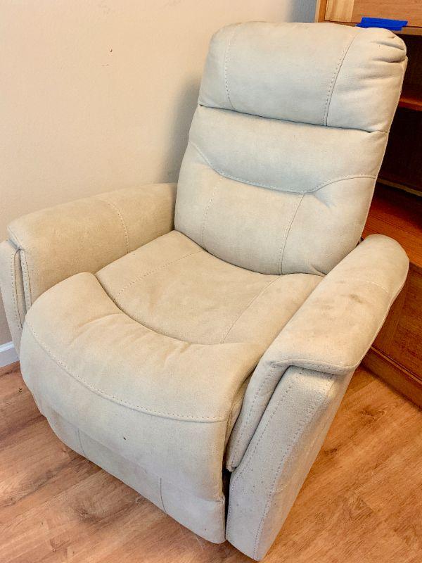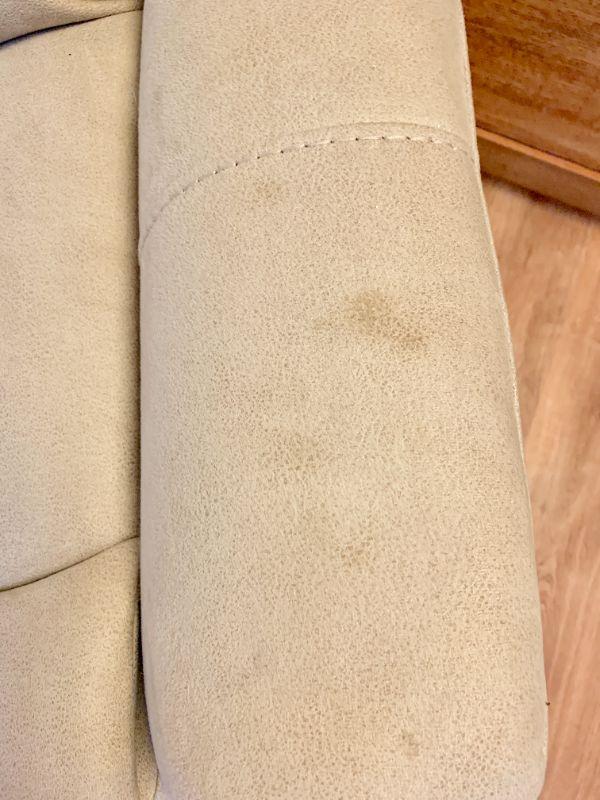 Light color suede upholstery One arm has a food stain.