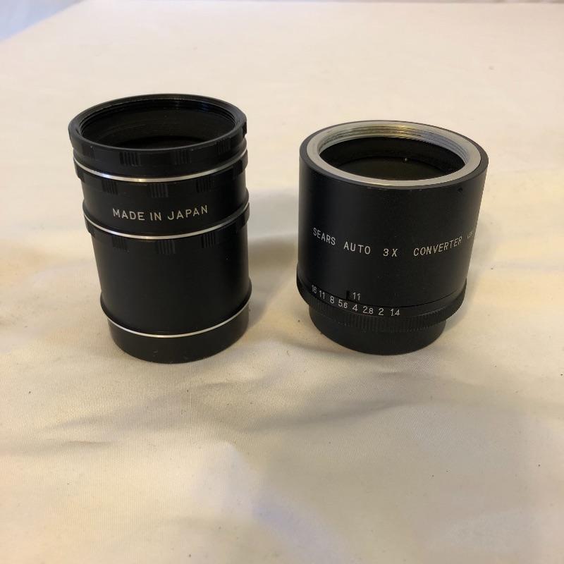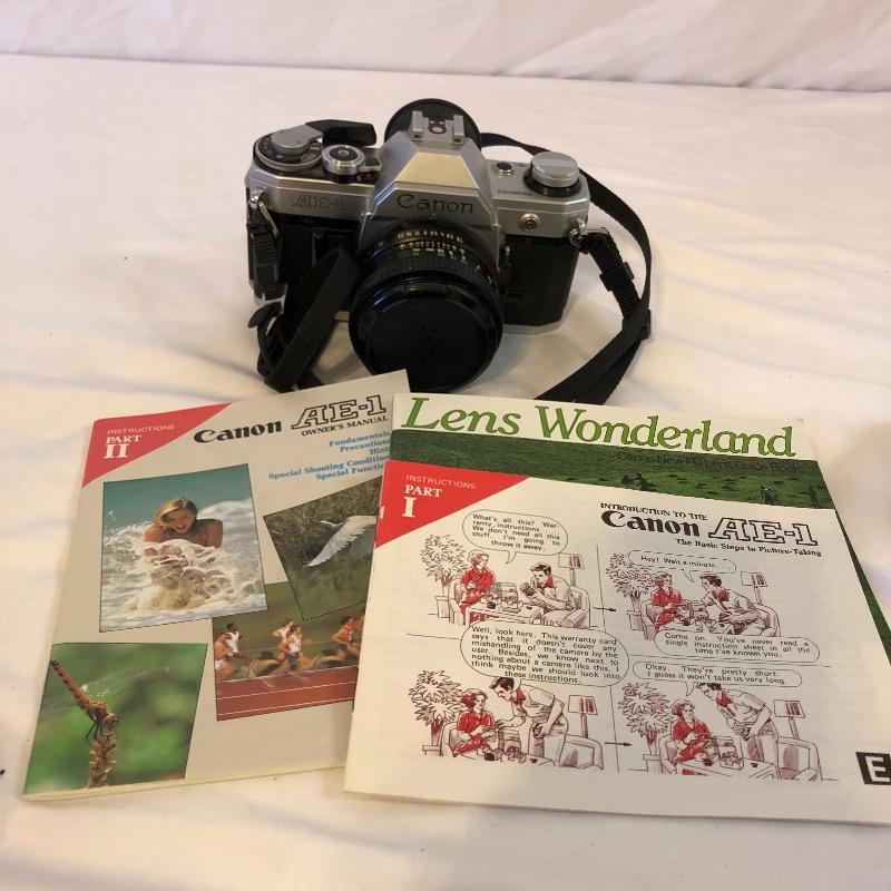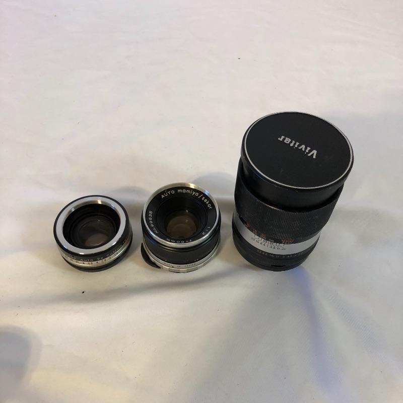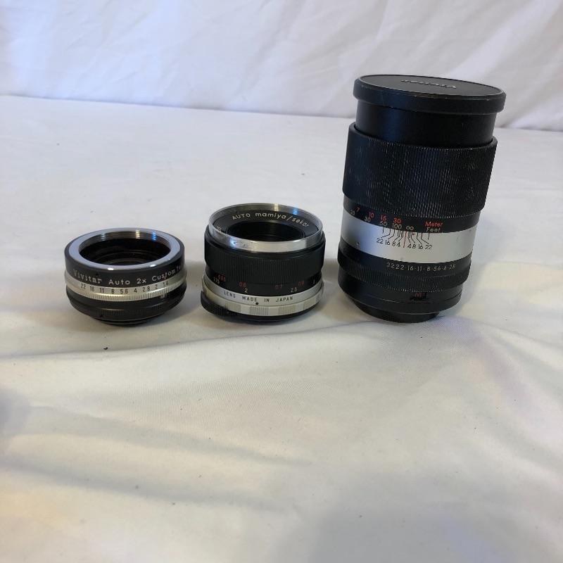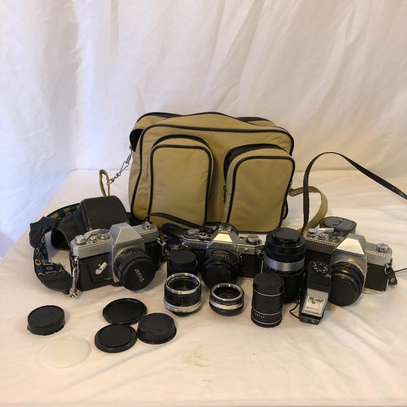 Get your collection of vintage film cameras in this lot. Lot includes Canon AE-1, Mamiya/Sekor 500TL and 1000 DTL Cameras, three lenses, Honeywell flash, Sears auto converter and more. Cameras and flash were not tested.