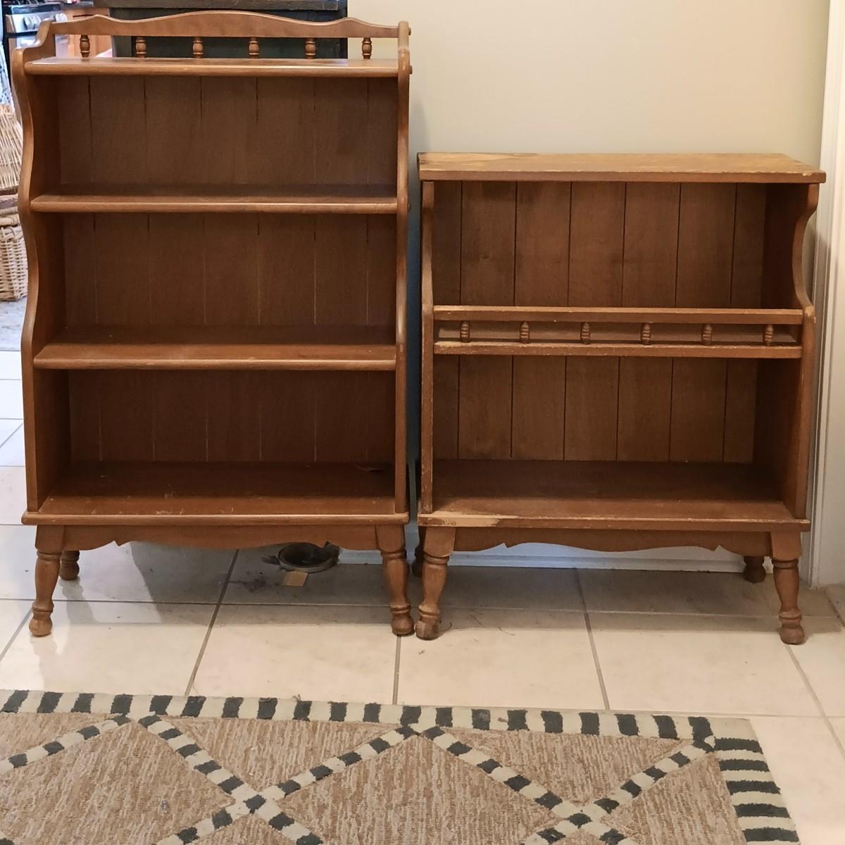 LOT 210: Pair of Vintage Wooden Bookshelves