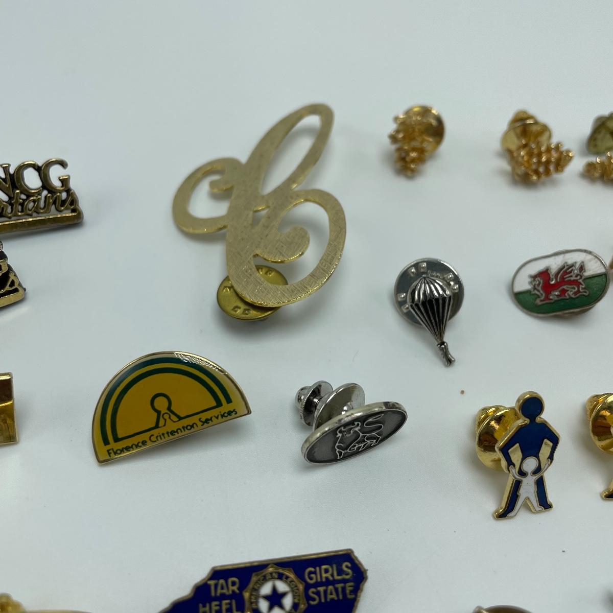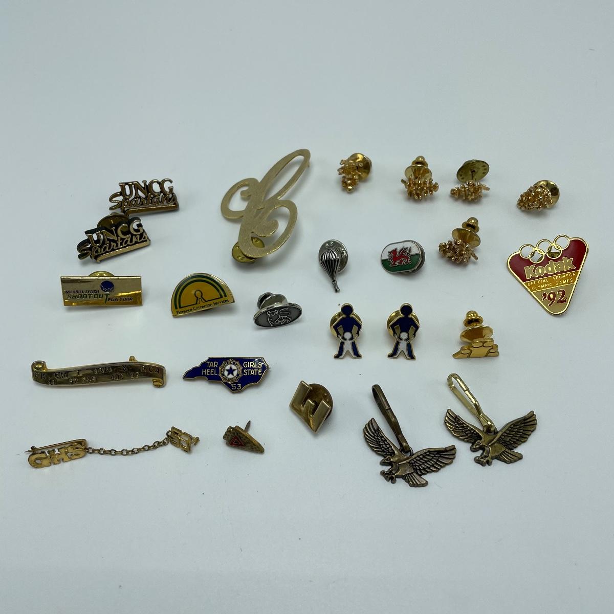 Over twenty fun, fashionable and elegant pins to add a little zip to your next outfit. Kodak Olympic “˜92, Spartans & Tarheels “˜53, two eagle clips and more. See images for lot inventory. Shipping available.