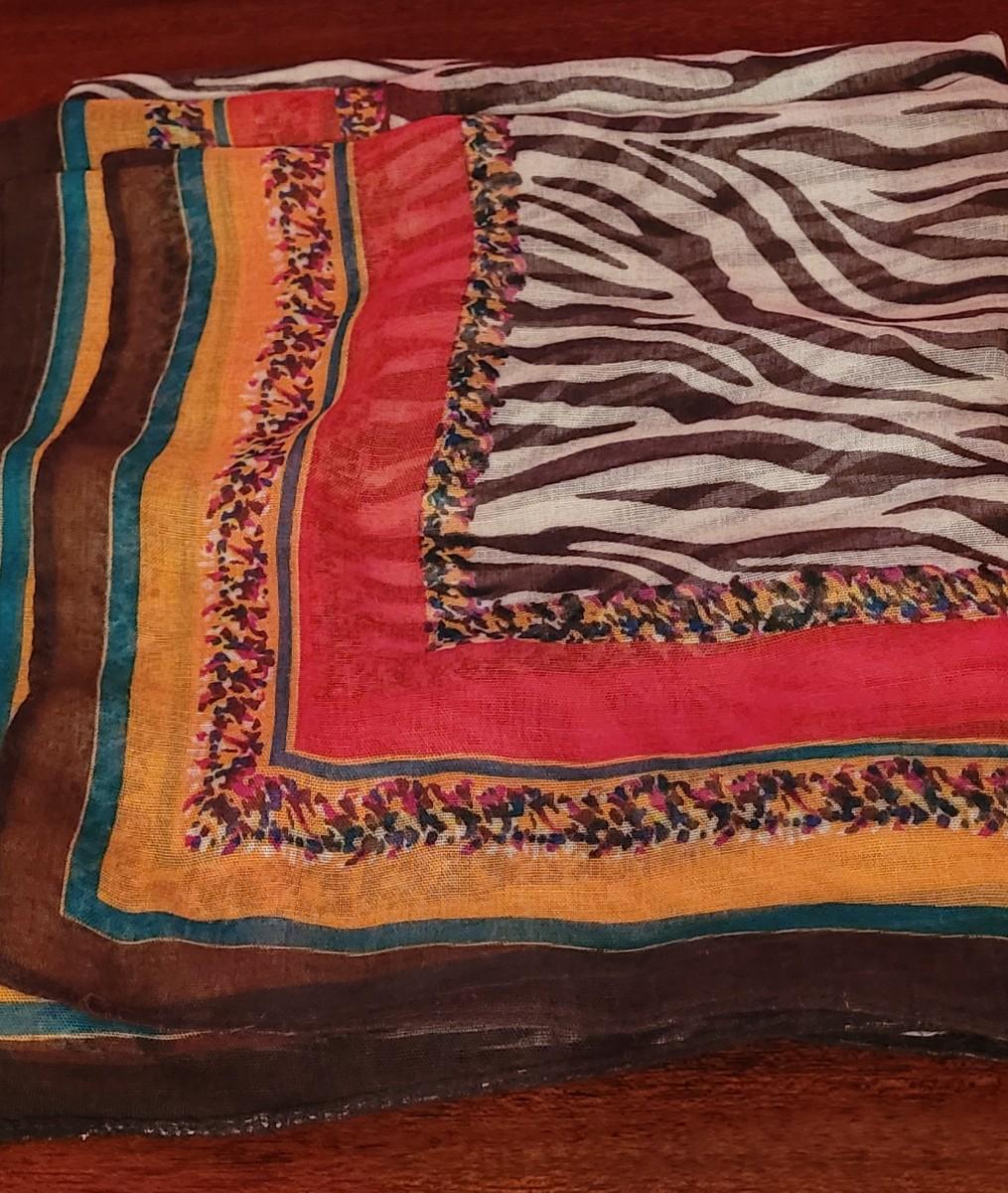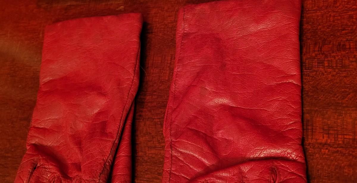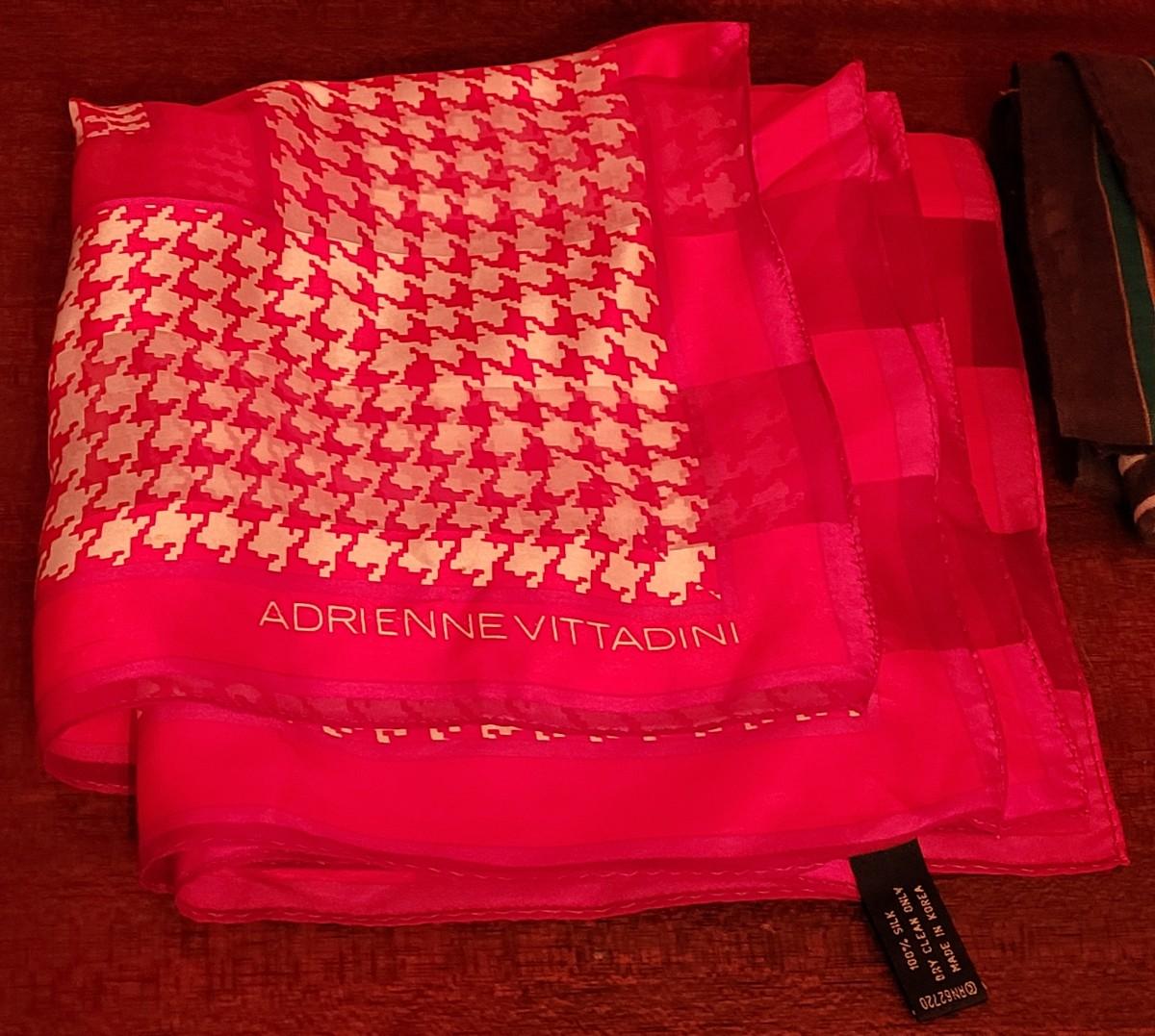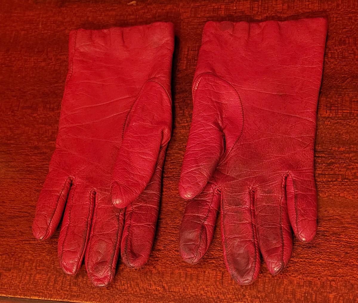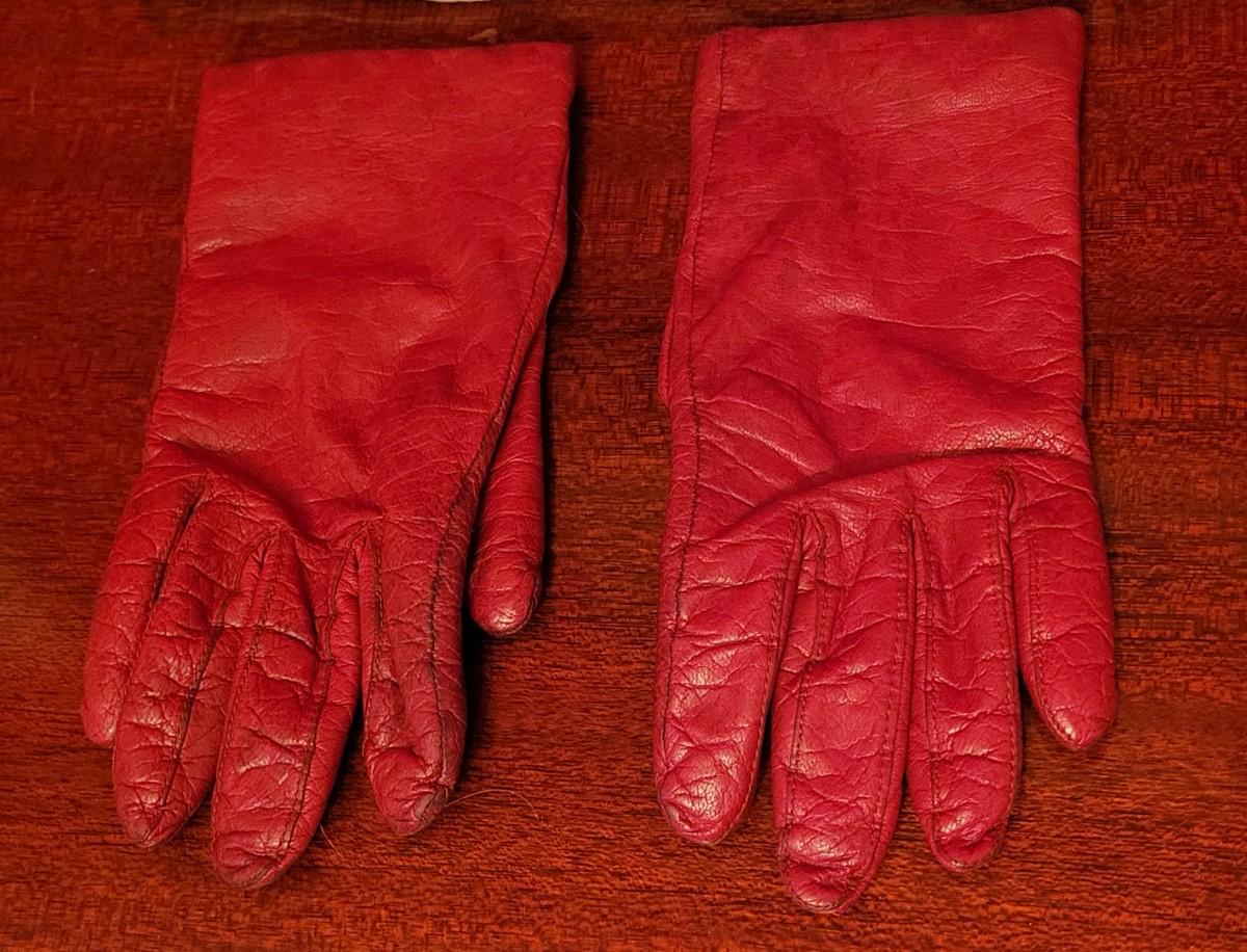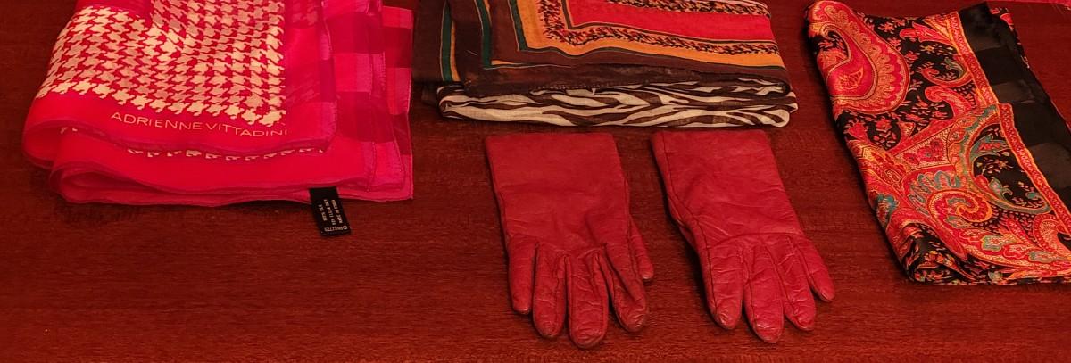 Lot 210: Vintage Red Leather Gloves, (2) Silk & (1) Zebra Print Scarves