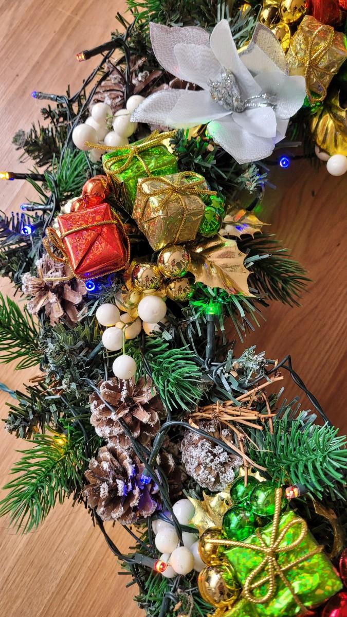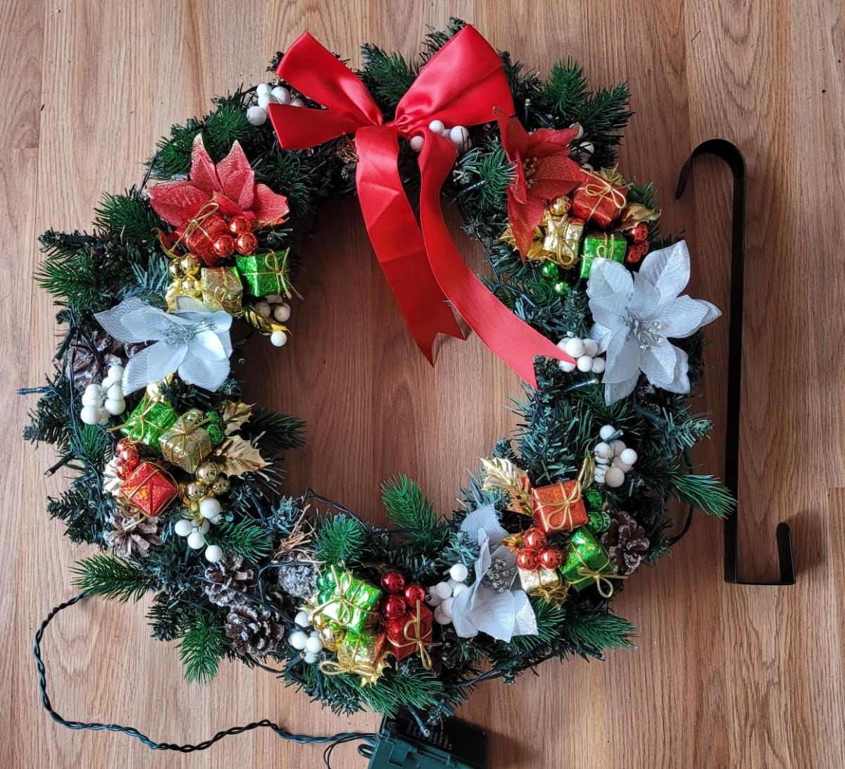 Lot 210: Holiday Wreath with Lights and a Wreath Hanger