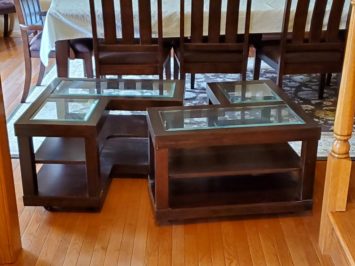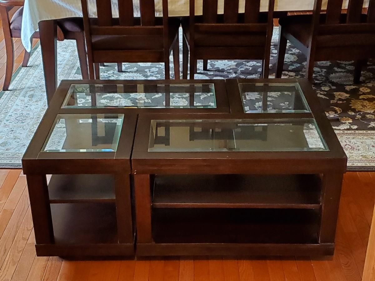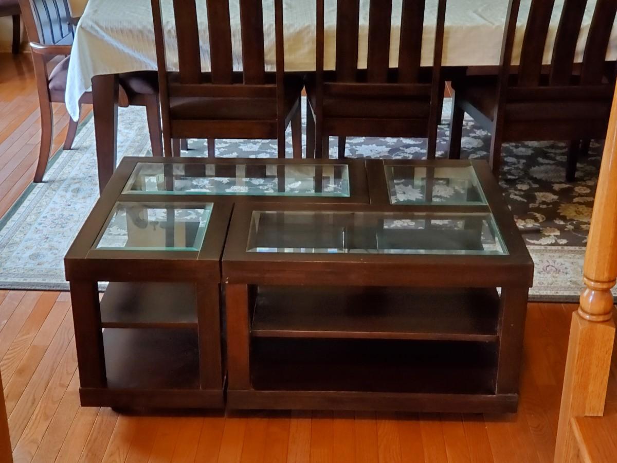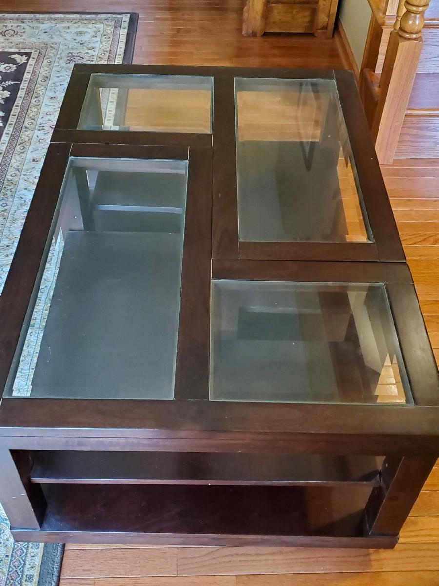 Versatile coffee table. It can separate to use apart. Perfect at ends of a sectional, or for when company in town.