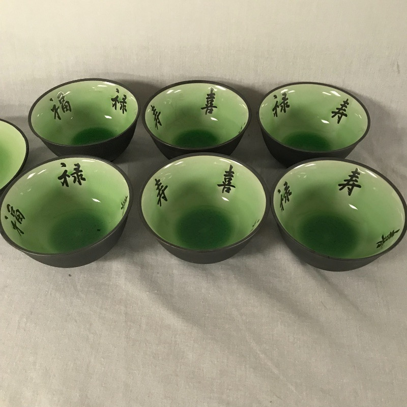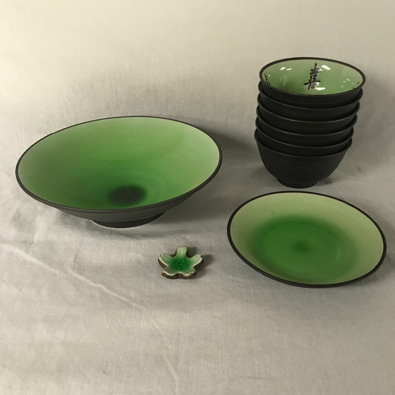Lot 210 - Black and Green Asian Dishes