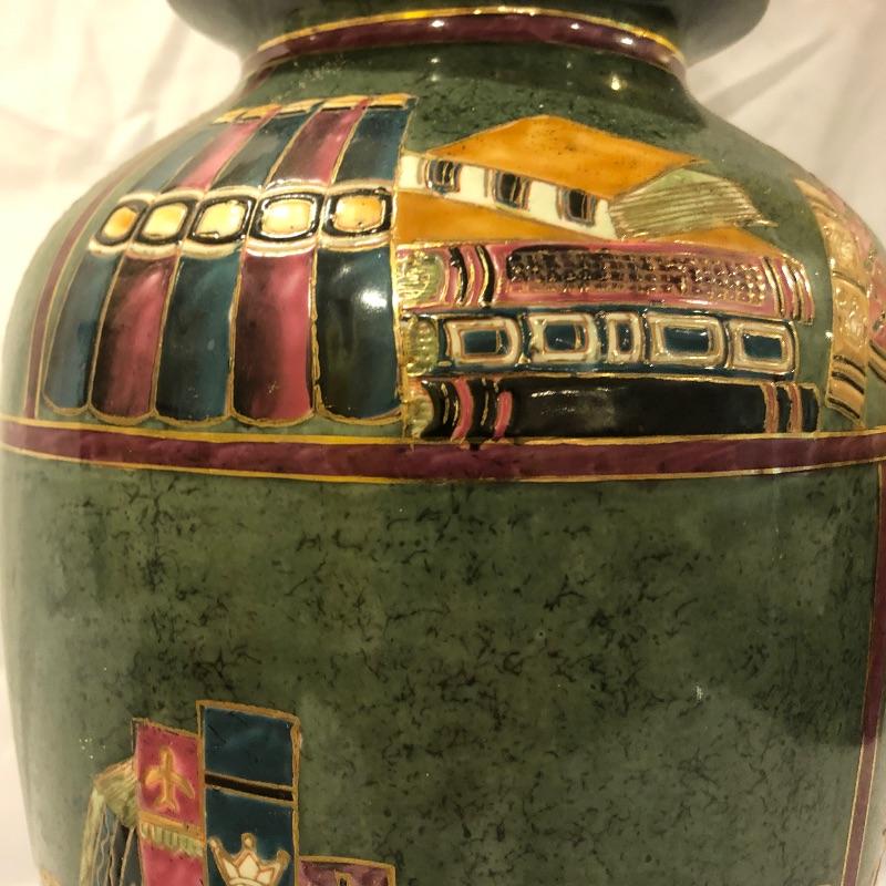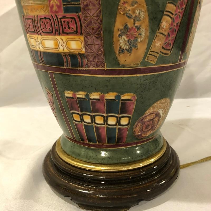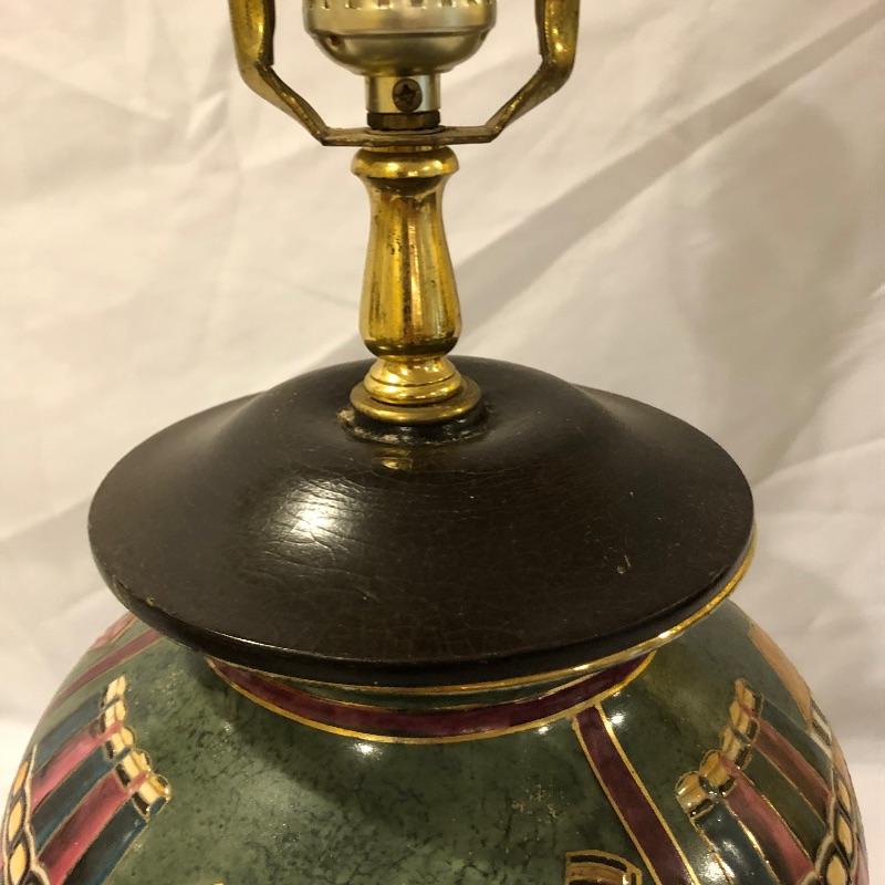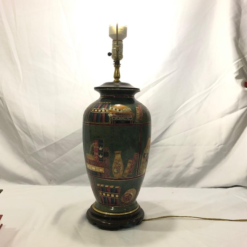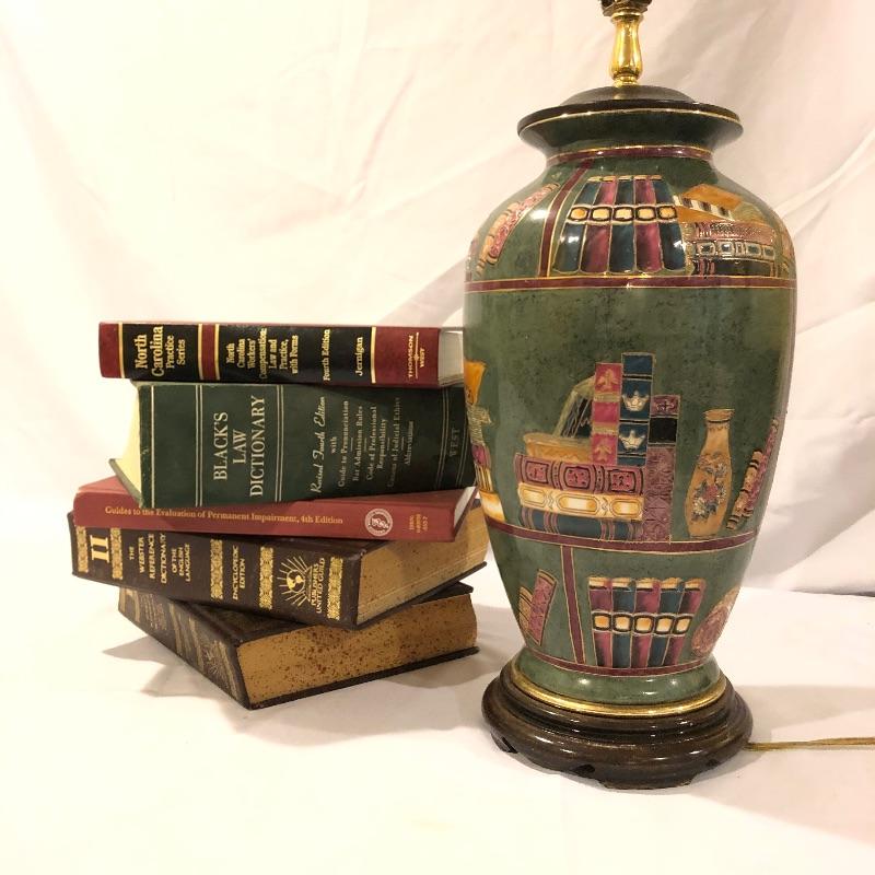 The perfect lamp for all you book lovers! This ceramic and book adorned lamp has an olive green background and just needs that perfect shade. We have paired the lamp with a handful of vintage books that will add serious credentials to your book collection, see images.