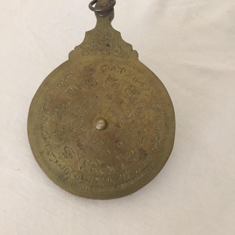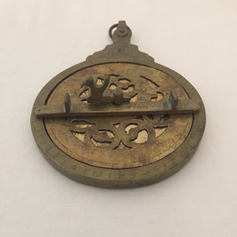 Brass astrolabe with candle wick cutters and wall hook. Unique brass astrolabe measures 6” x 4” is sure to be a great conversation starter. Candle wick cutters and a neat wall hook.