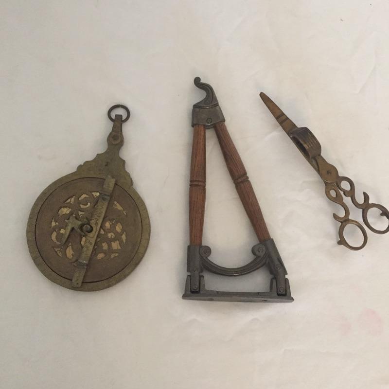 Lot 210 - Brass Astrolabe and Vintage Candle Wick Cutters