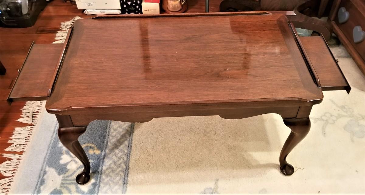 Nice Queen Anne Style coffee table with 2/pull outs (see photos). 36" x 21", 18.75" tall