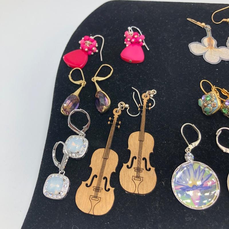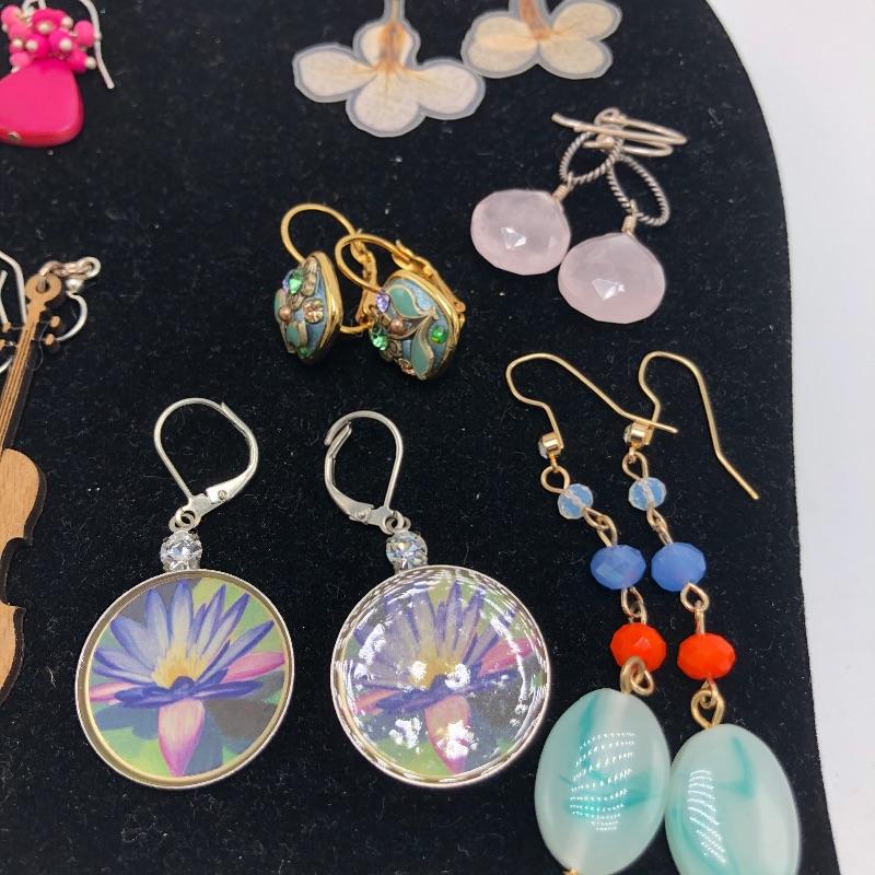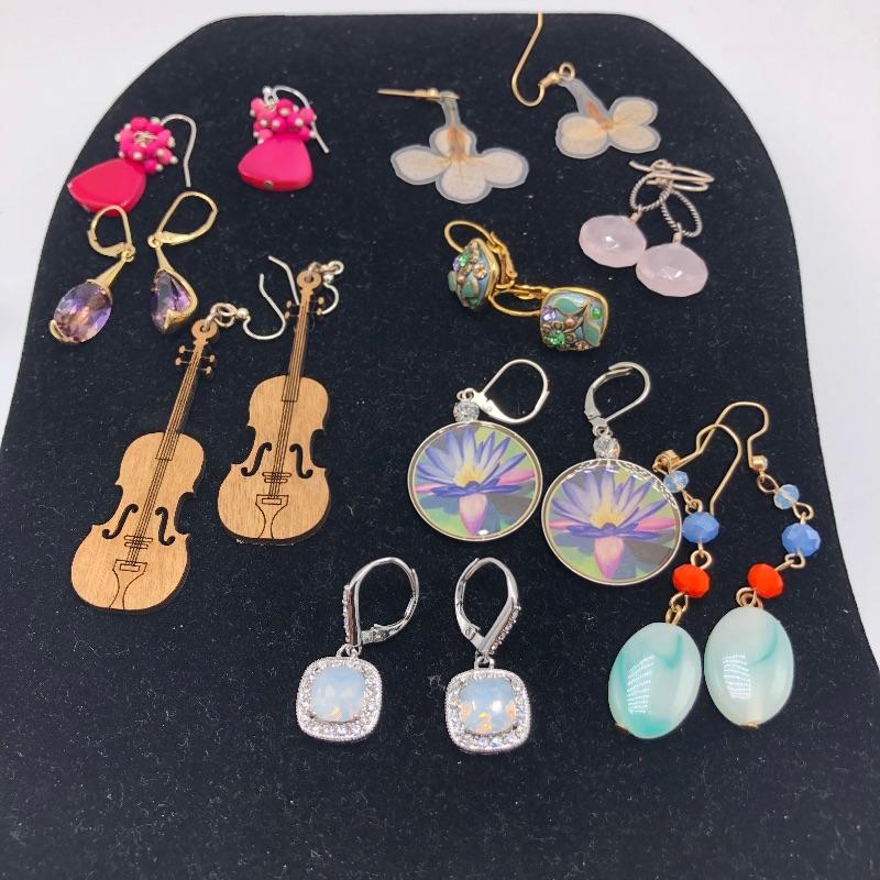Lovely assortment of earrings for pierced ears that includes post and French wire. Nine pairs in total, the second to last pair in images is stamped Michal Galan, see images for more information.