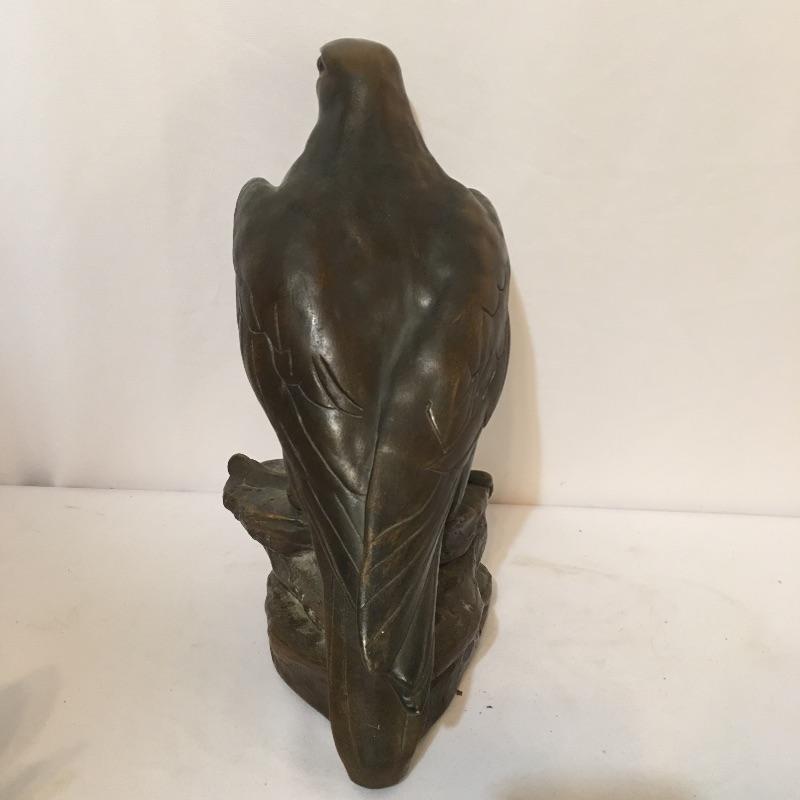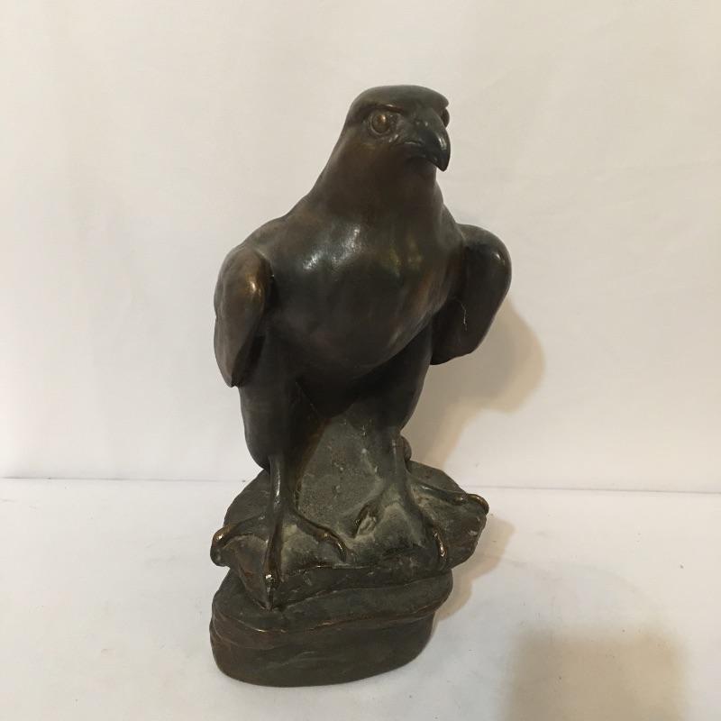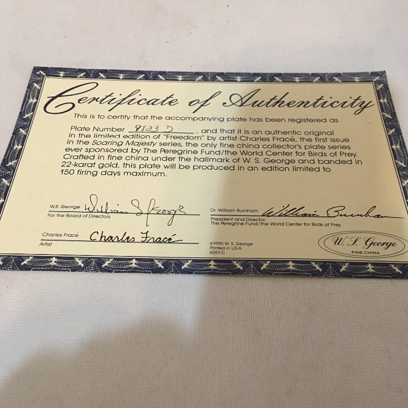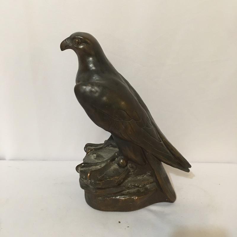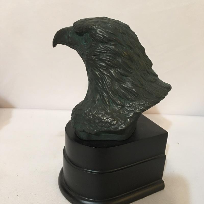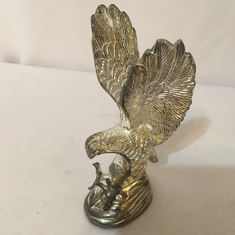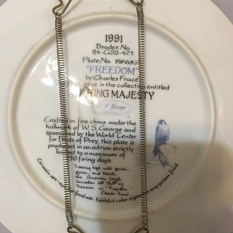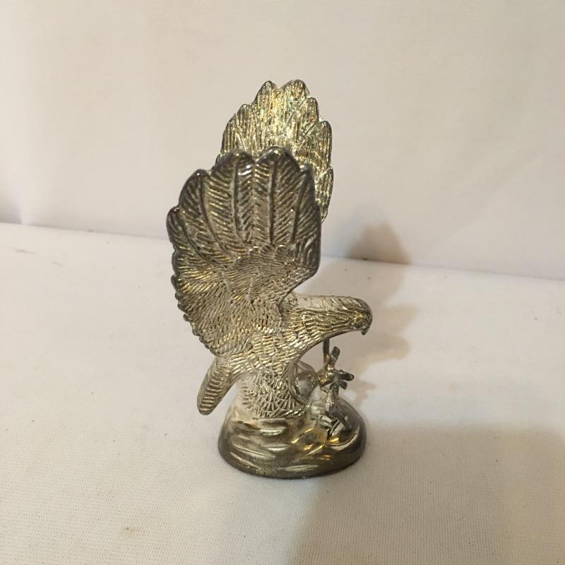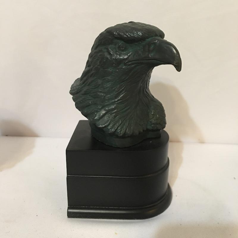 Soar like an eagle with this majestic lot. Collection includes pair heavy bronze colored eagle bookends and statue, mini eagle figurine, eagle print, Royal Carlton figurine, Hampshire Silverplate eagle, American eagle figurine and a numbered collectible plate titled Soaring Majesty with COA. Largest eagle measures 8” x 10” x 14.5”.