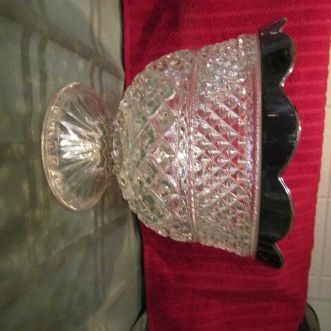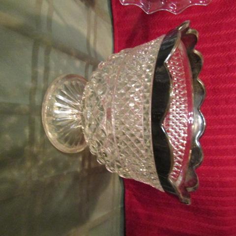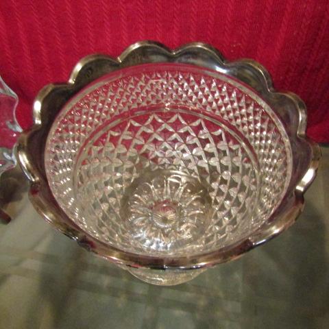 SERVING OR FRUIT BOWL ON A PEDESTAL WITH SILVER PLATED RIM