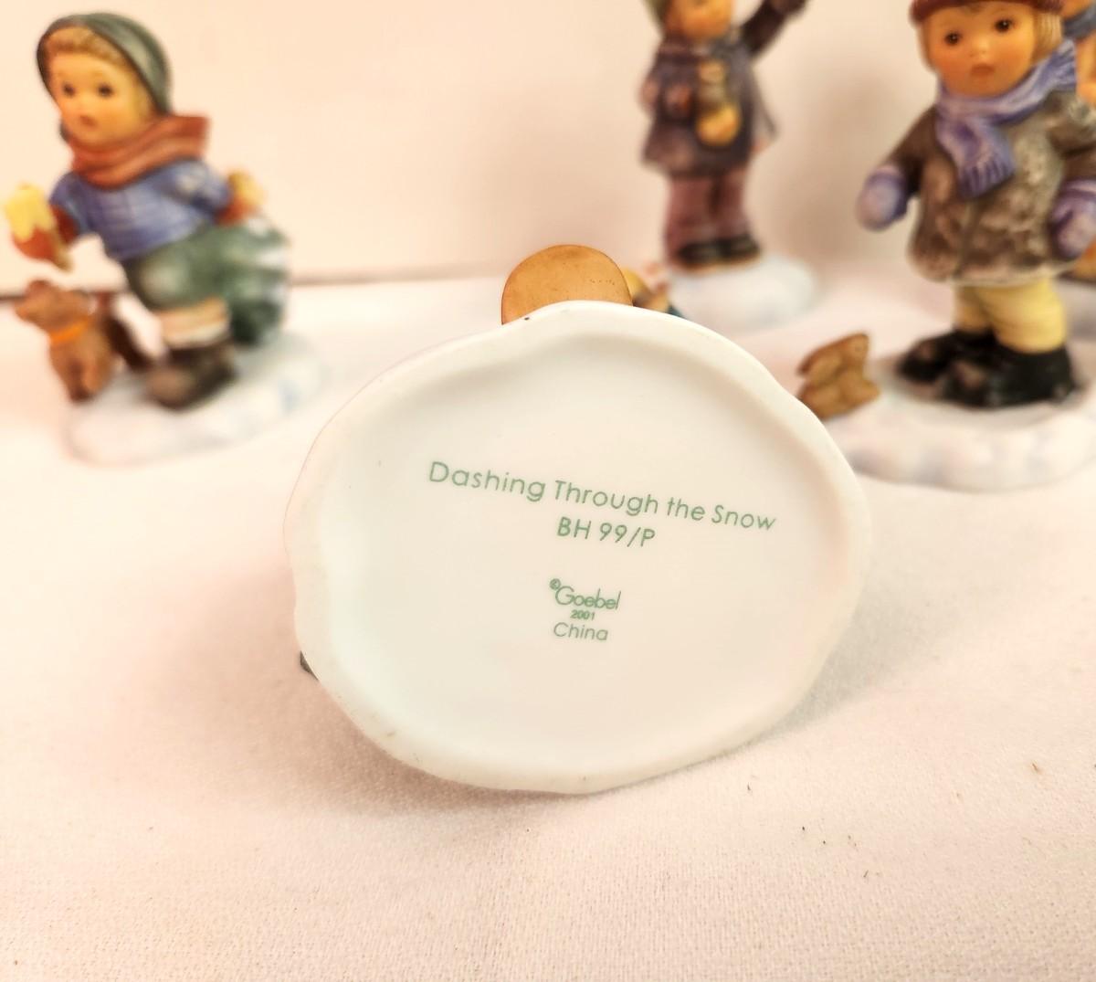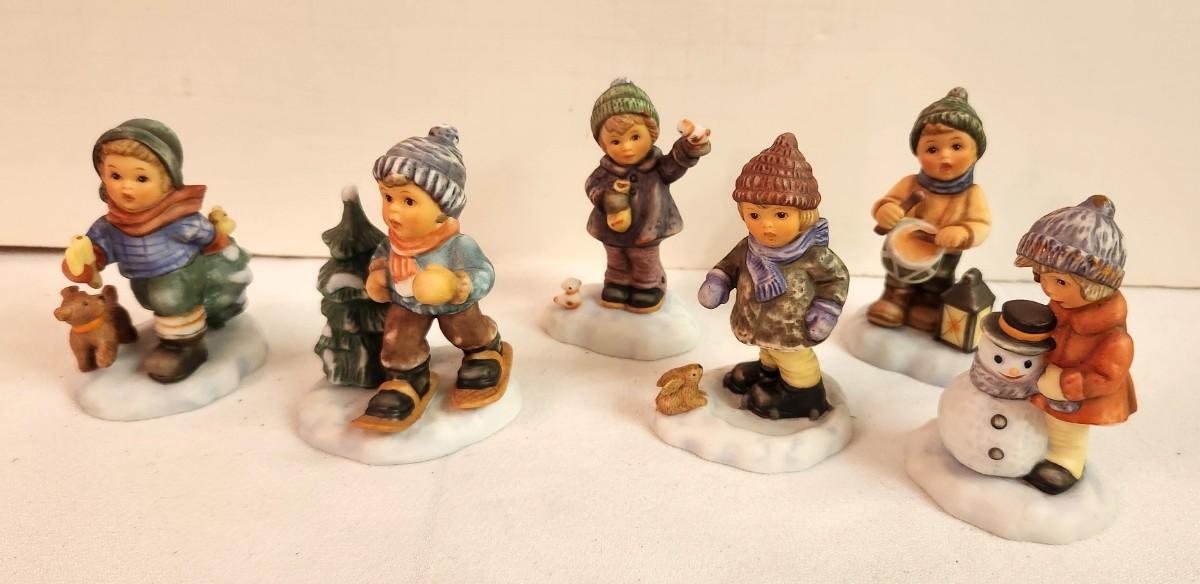 Six piece lot of Goebel Hummel-like figurines - average 3.5" tall - bisque porcelain. Good condition.