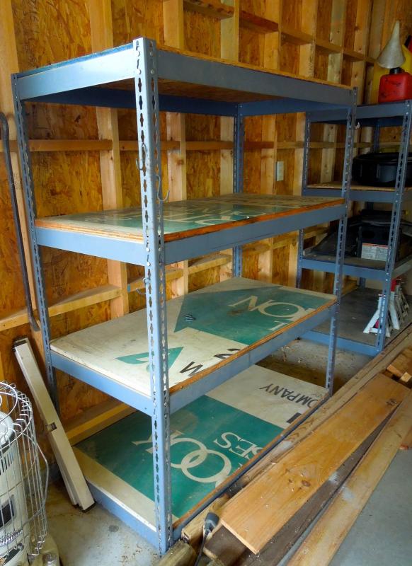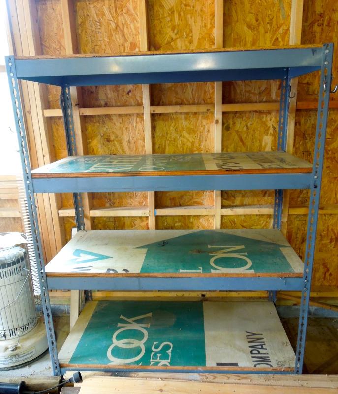 Custom made from metal and shelves are constructed of plywood advertising signs. Easy access to your truck from garage.