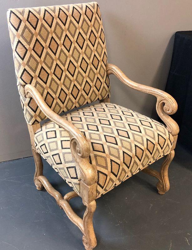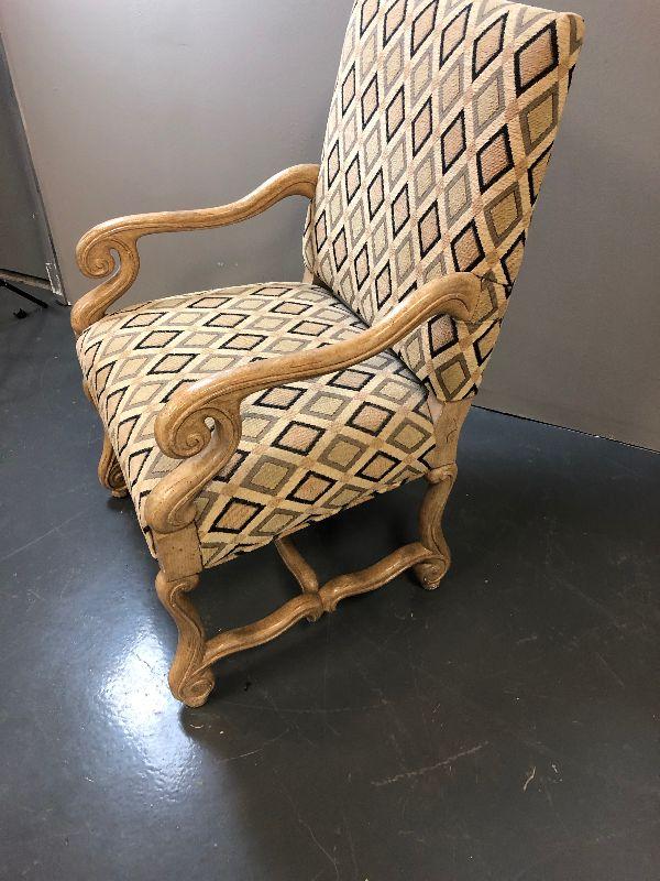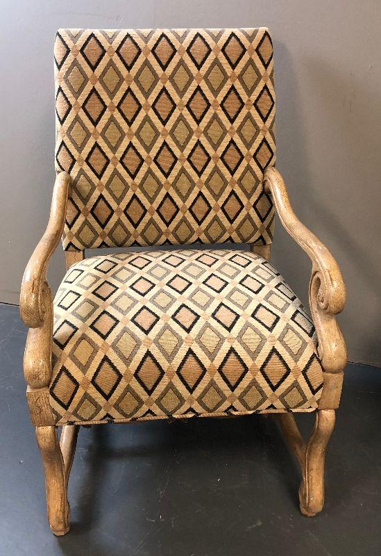 Lot # 210 Lovely Carved Wood Arm Chair Sand / Tan Tones