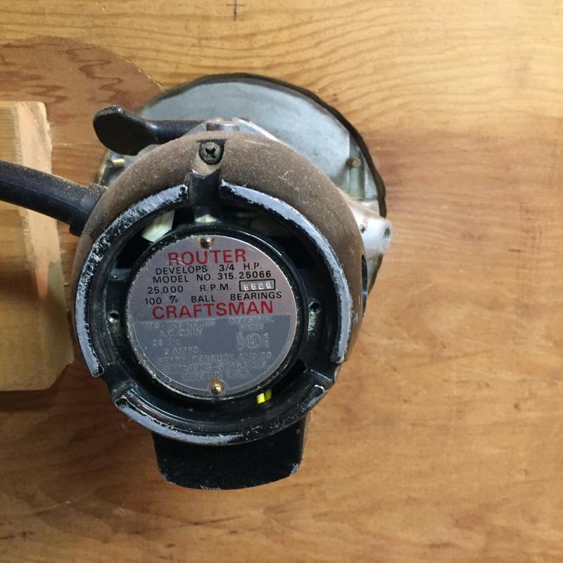 Router Tabletop with Craftsman Router in good working order.Tabletop has no Legs and measures 37” x 27”.