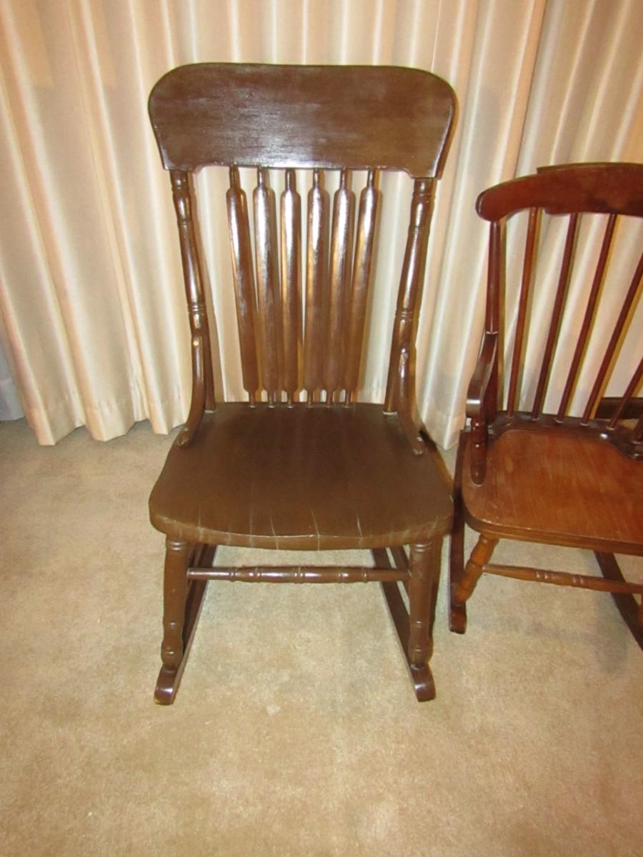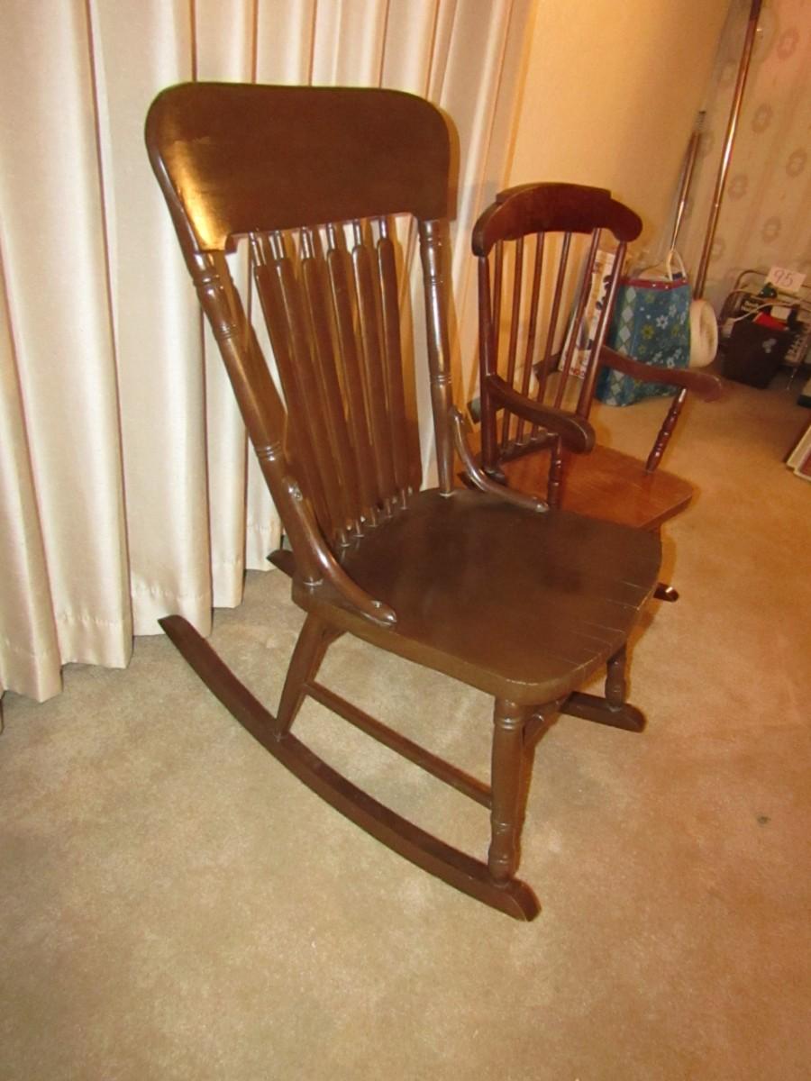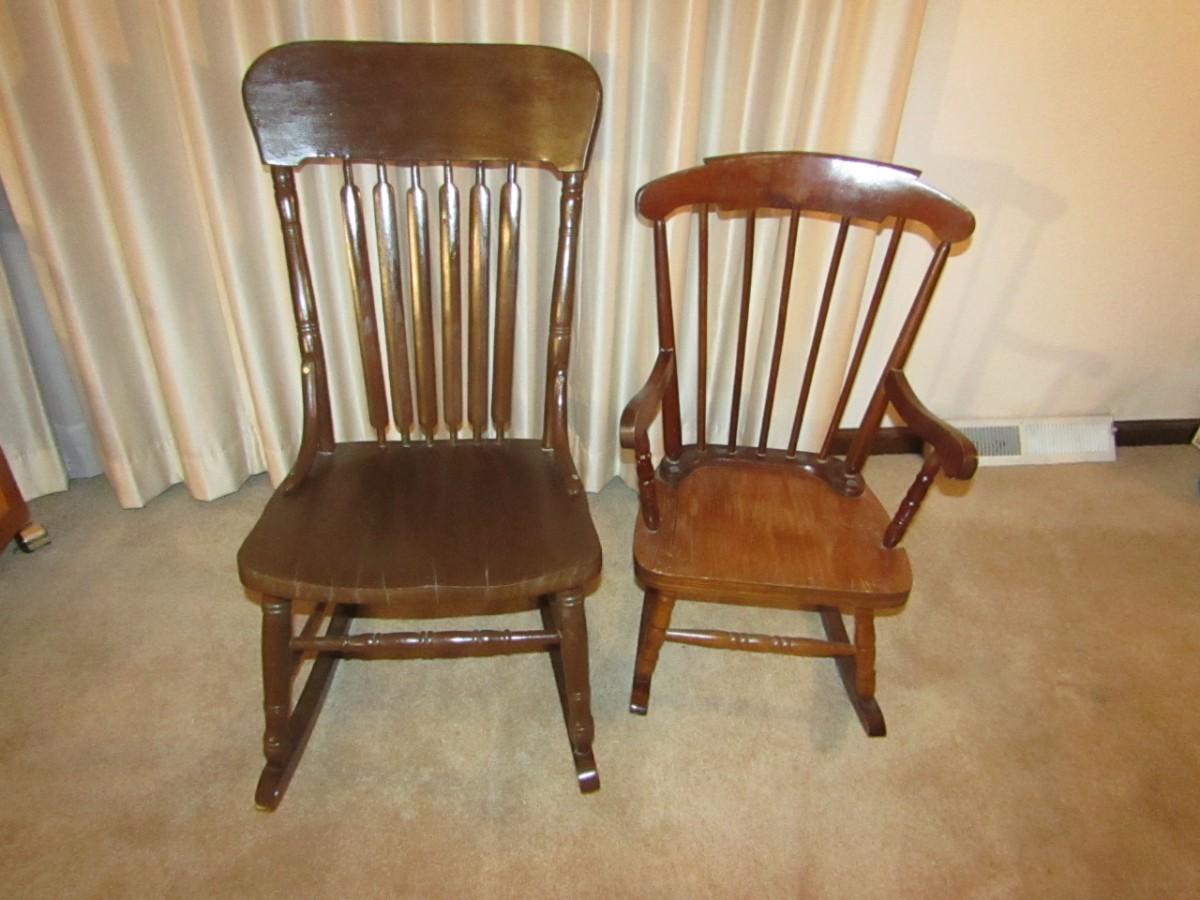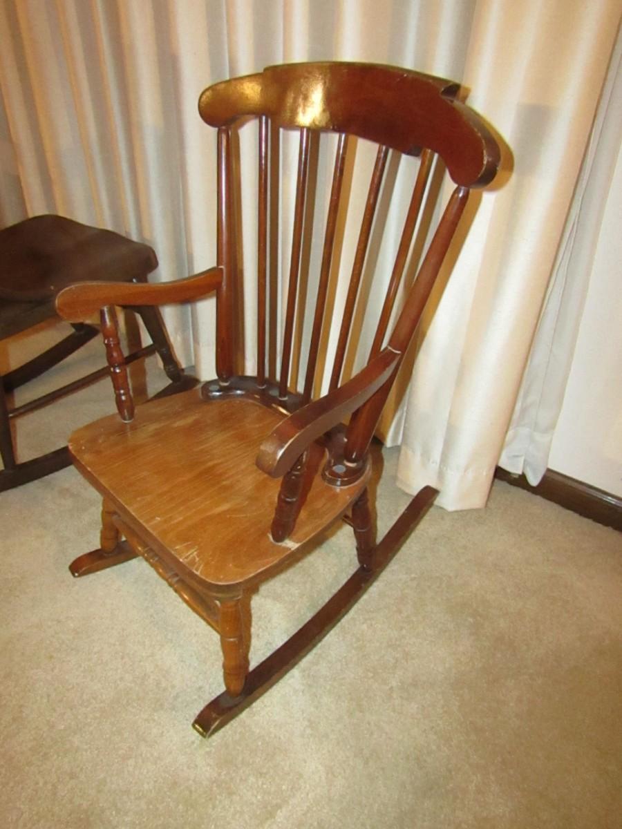 LOT 210 SEWING ROCKER AND A CHILD'S ROCKING CHAIR